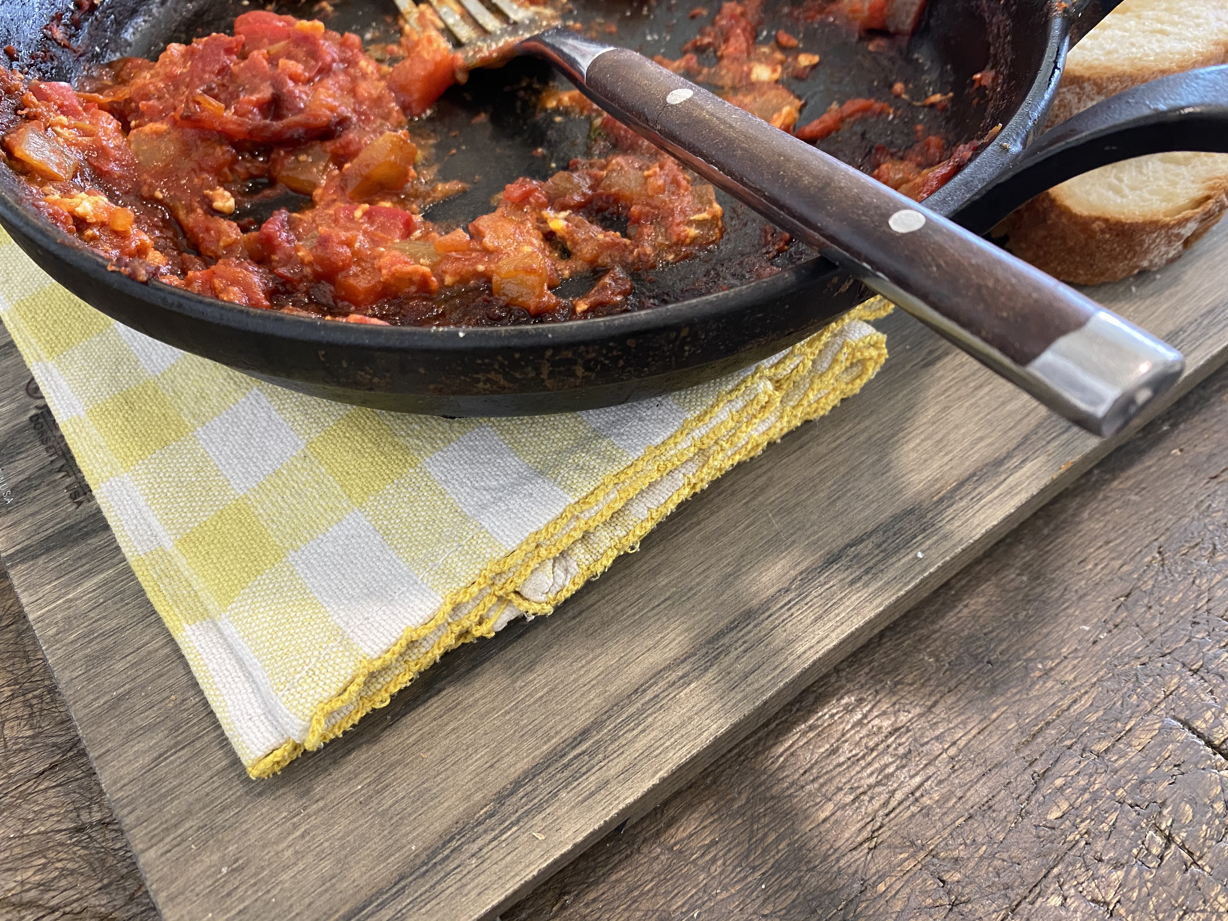 톡 터트려 토마토 소스와 버무려 슥 빵에 올려먹으면 됩니다