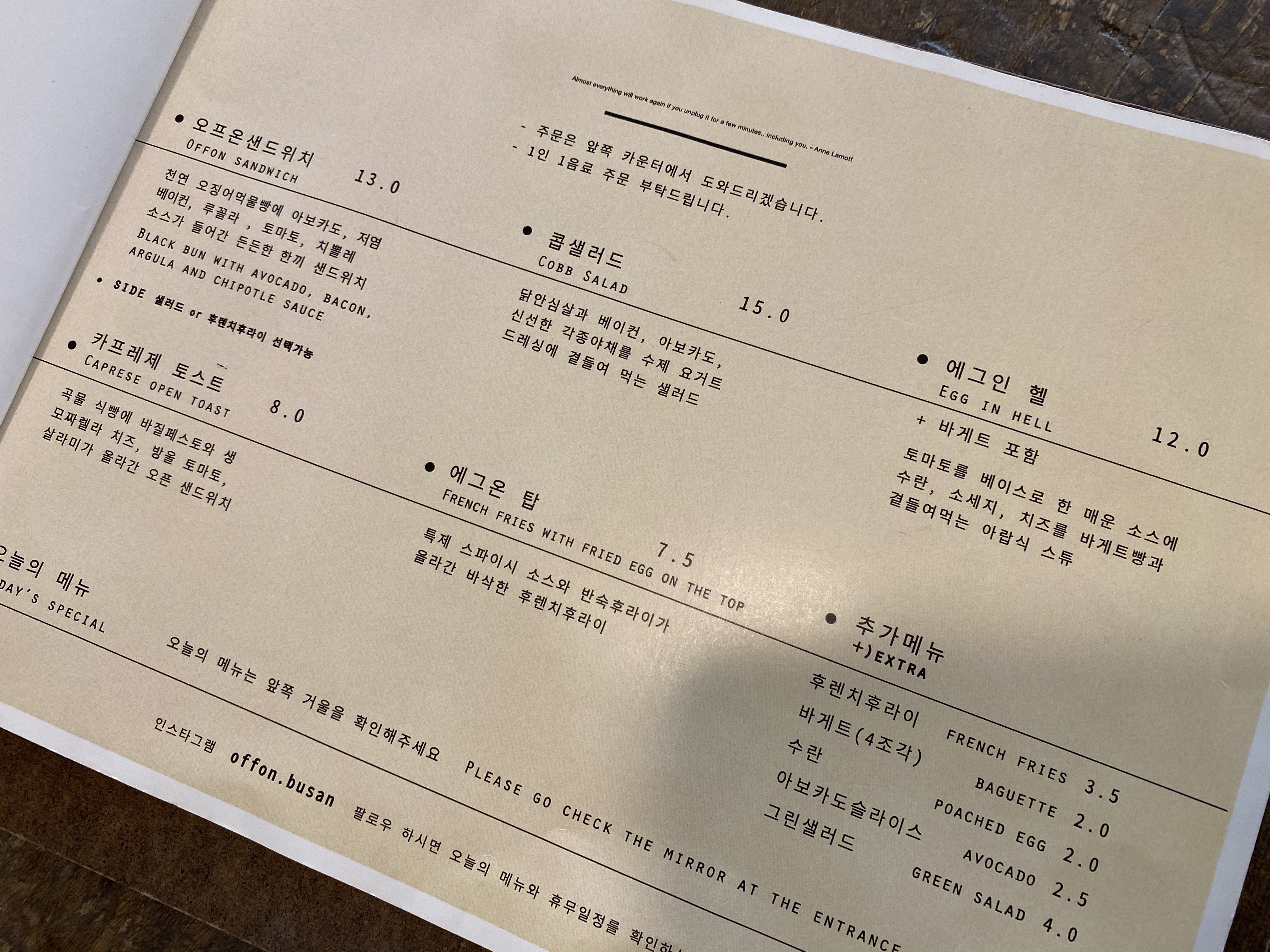 기대했던 브런치맛집 오프온의 에그인 헬이 나왔습니다!