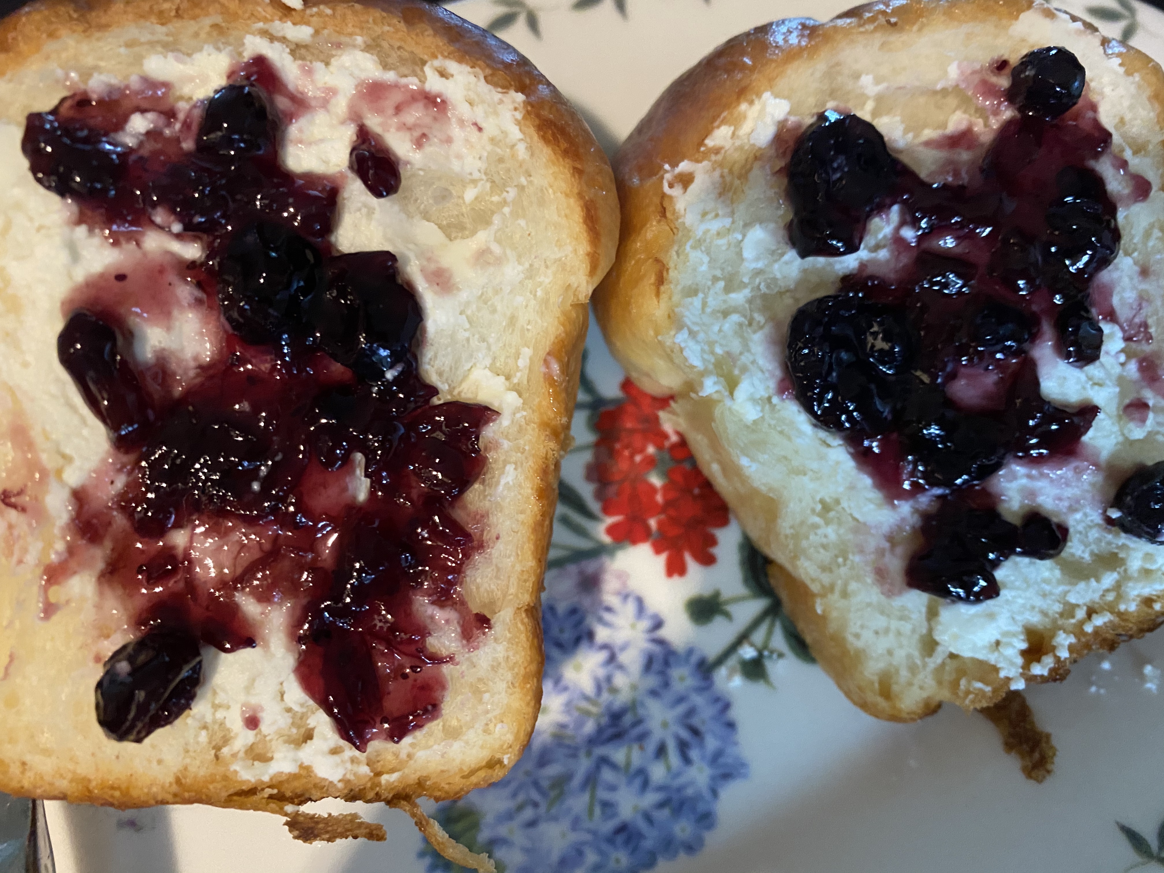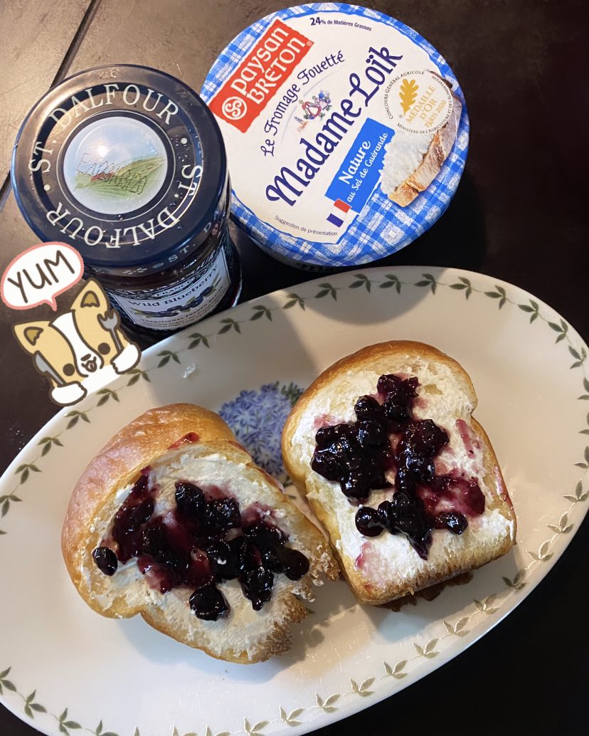 다음은 샹달프 블루베리 잼을 바를 차례입니다