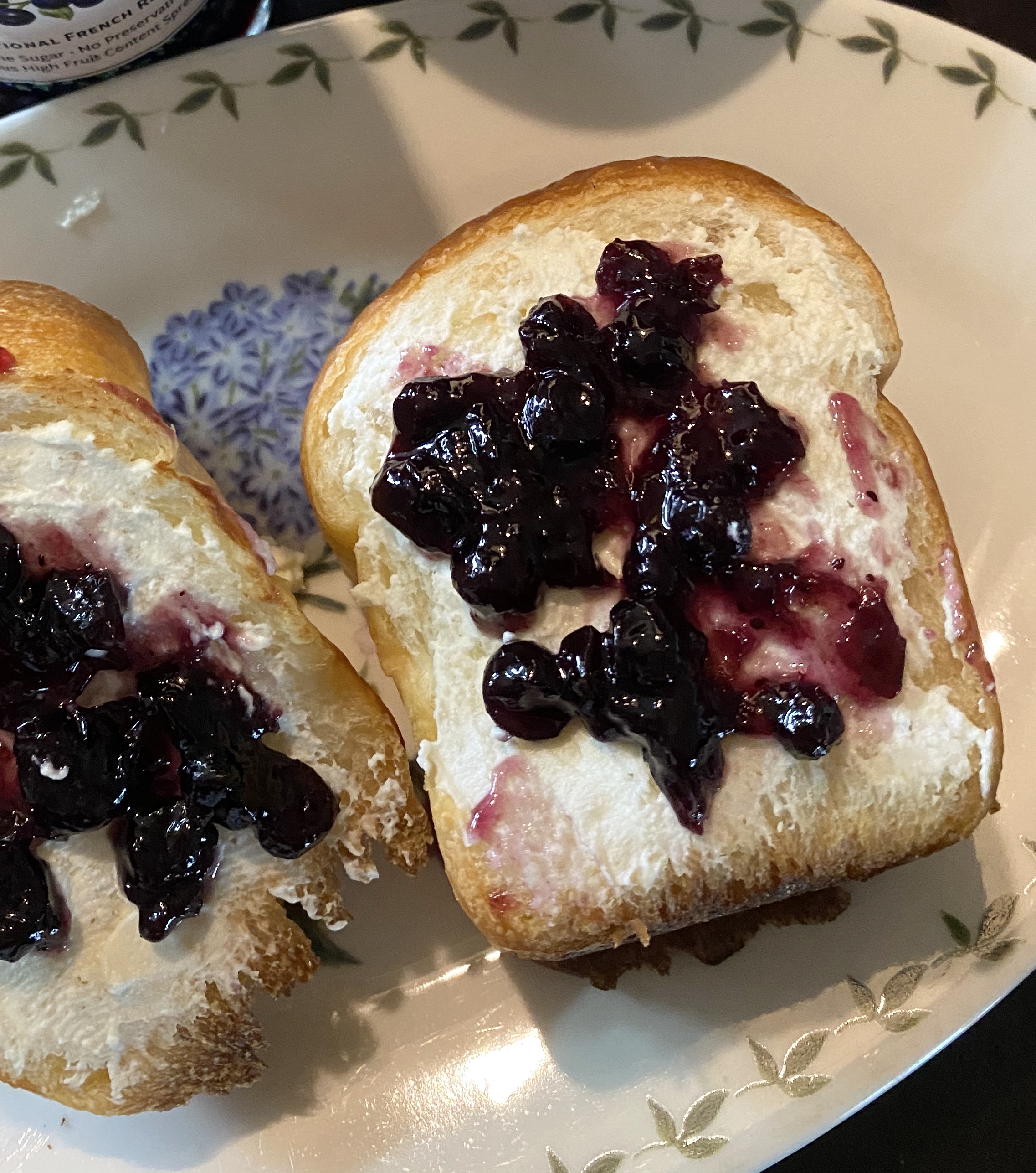 다음은 샹달프 블루베리 잼을 바를 차례입니다