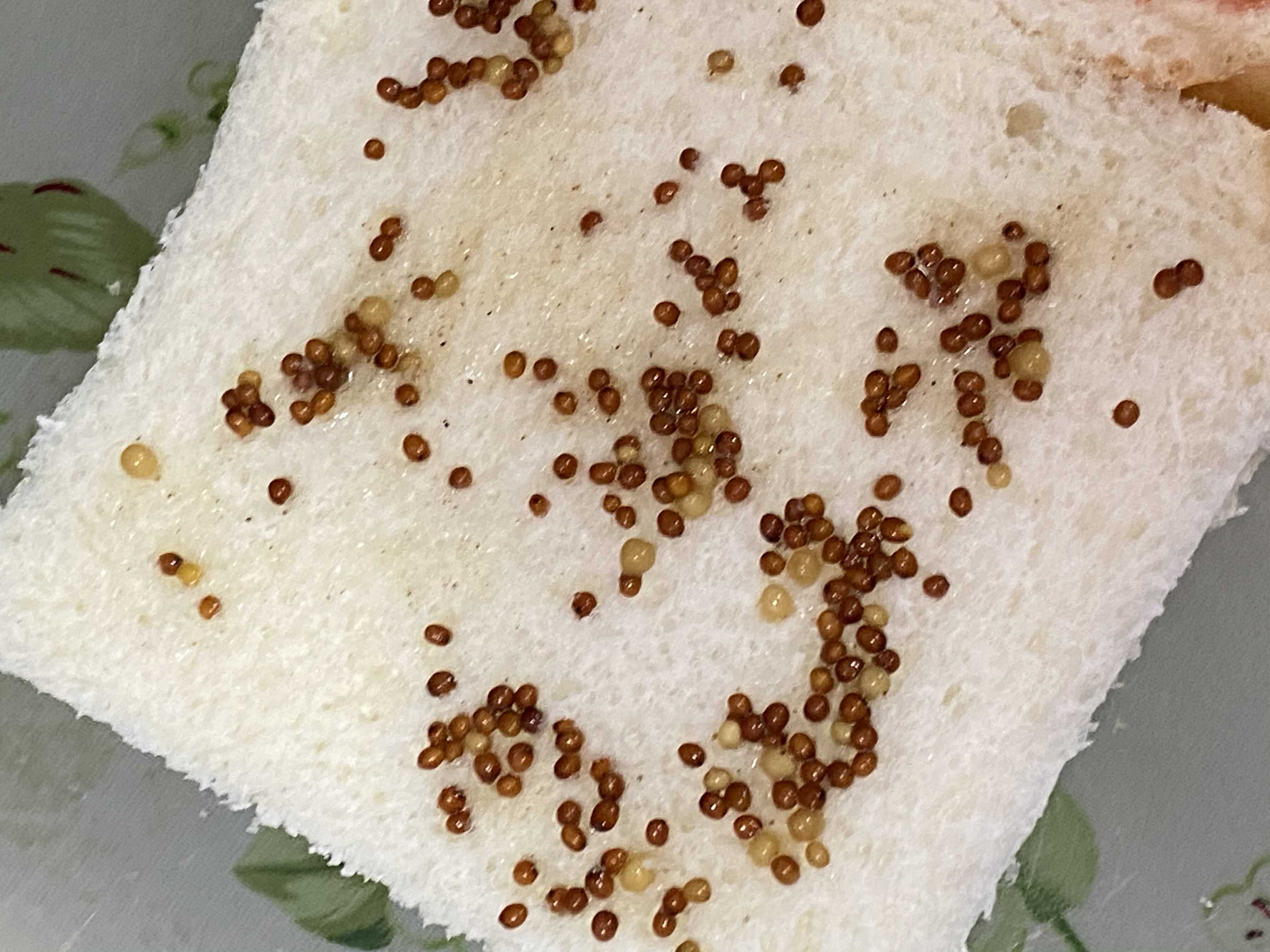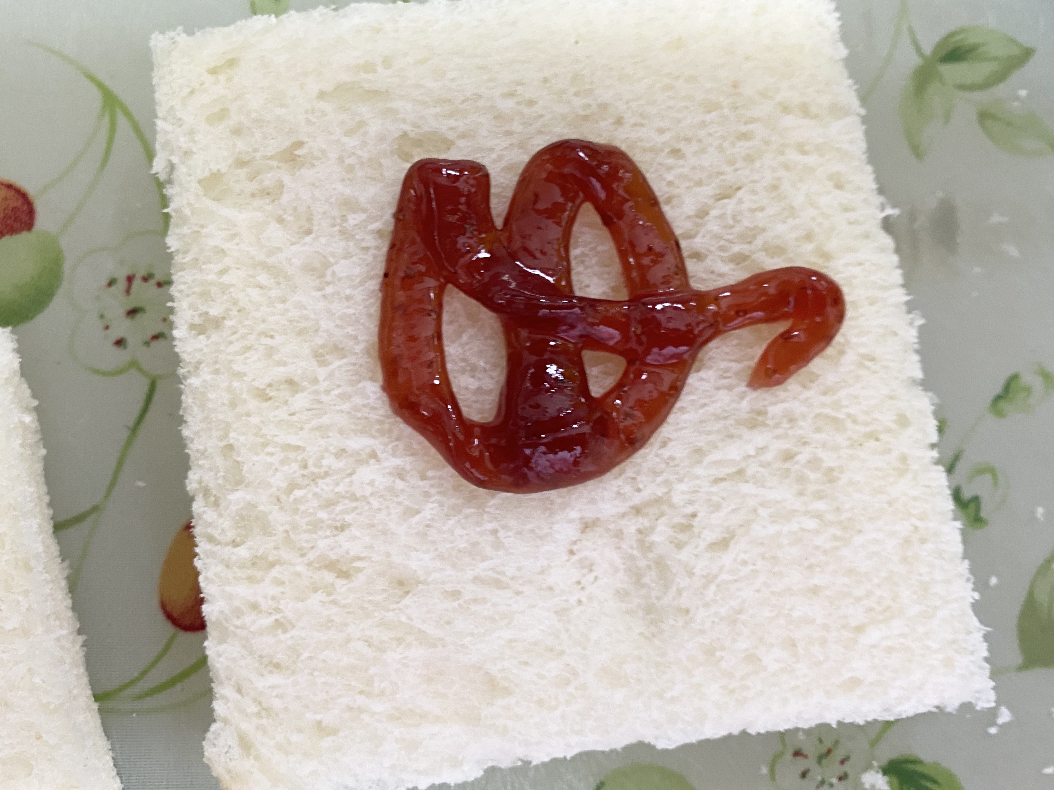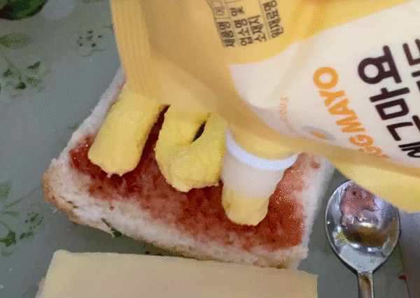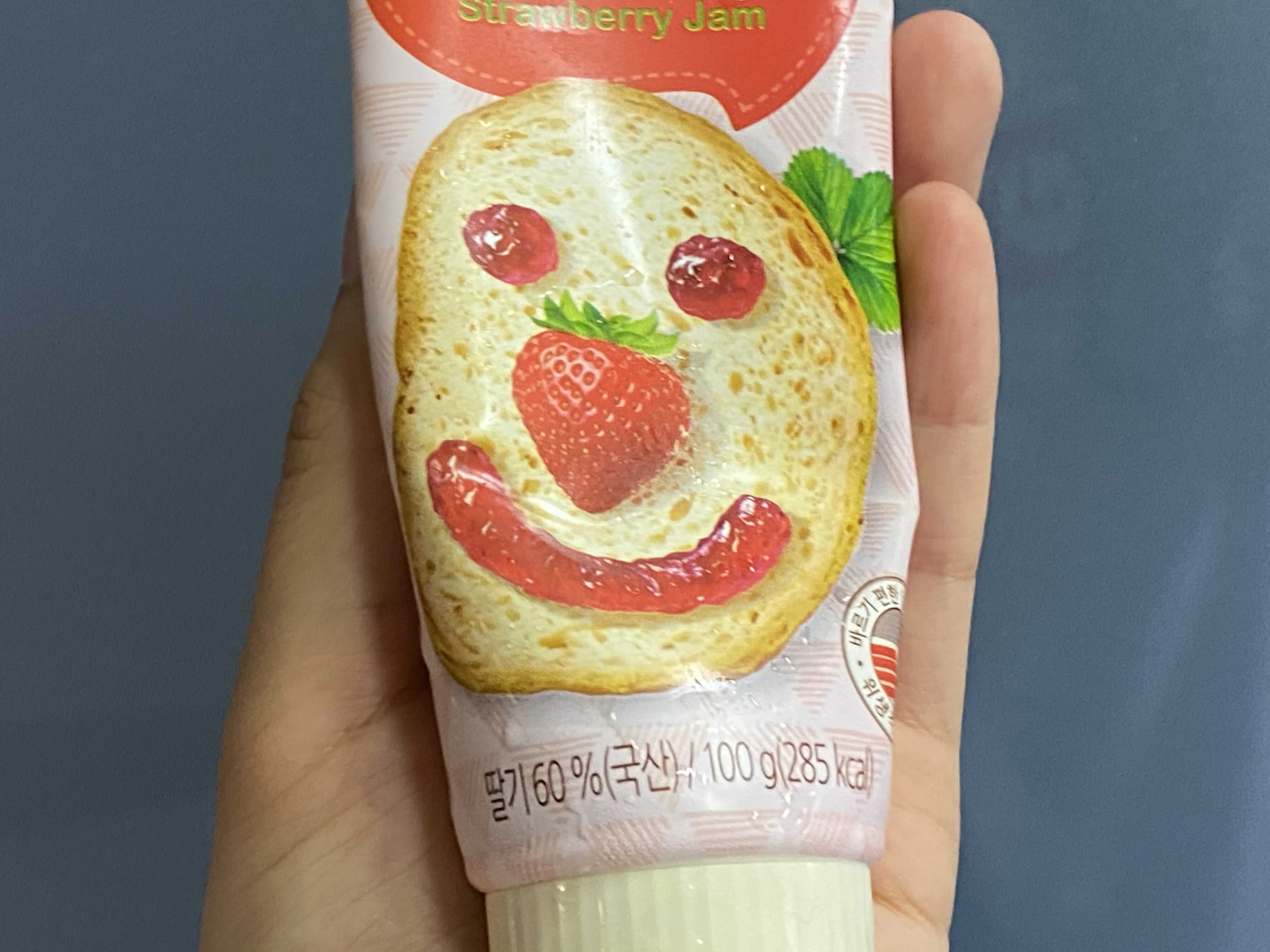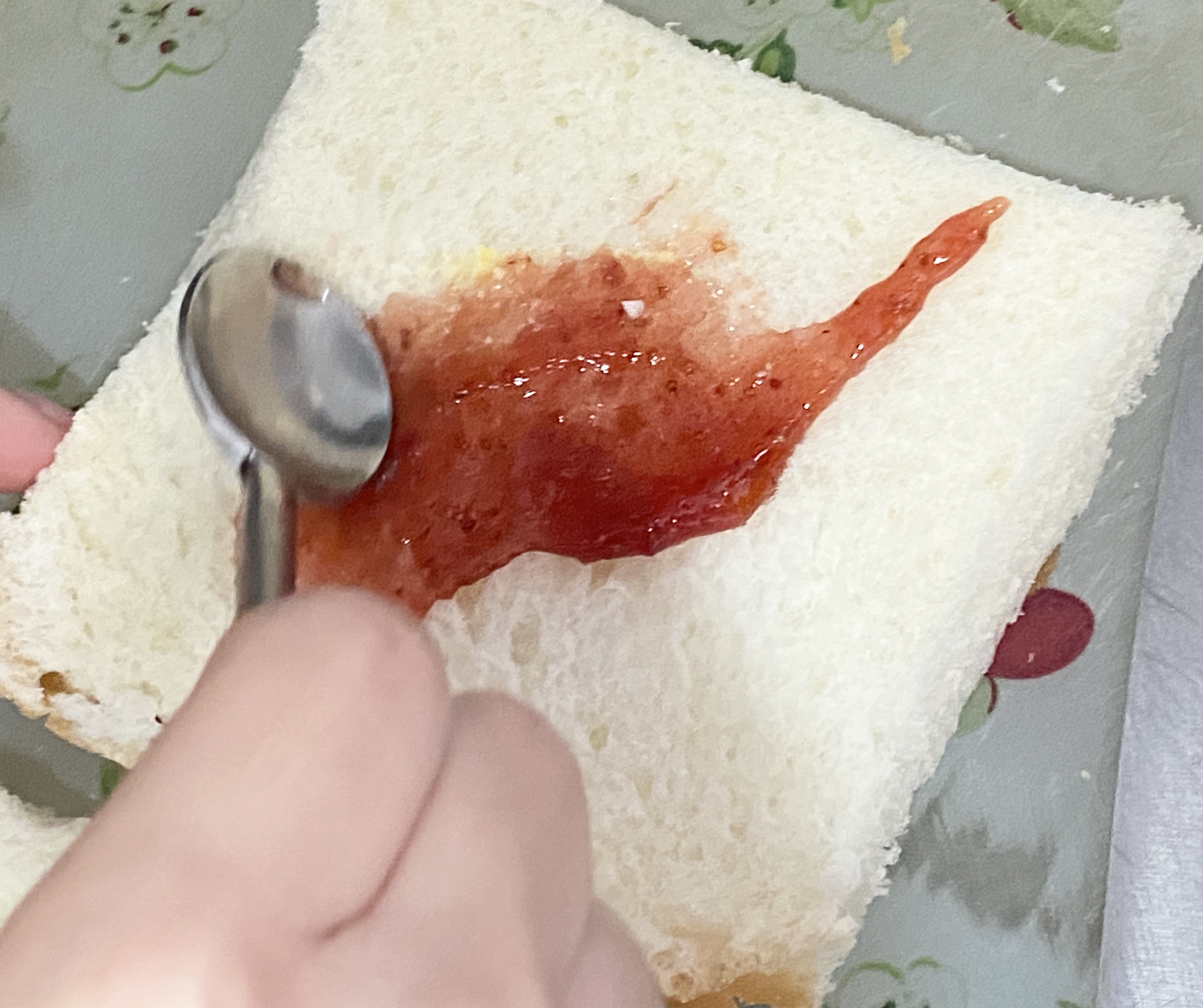 다른쪽에는 딸기잼을 슥슥 발라줍니다