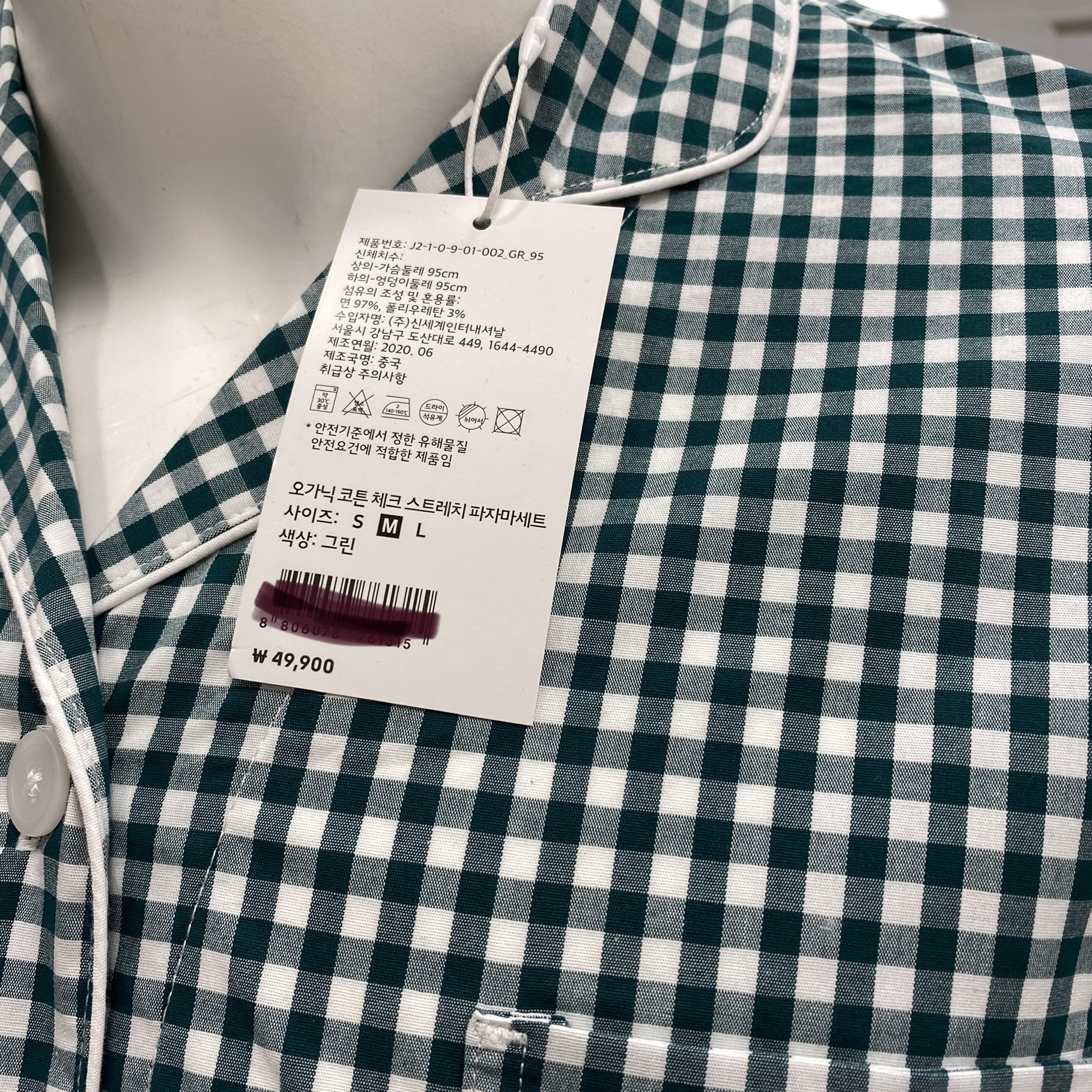 오가닉 코튼 스트레치 파자마 세트 블루의 가격은 39,900원인데 체크무늬는 49,900원인 모양입니다.