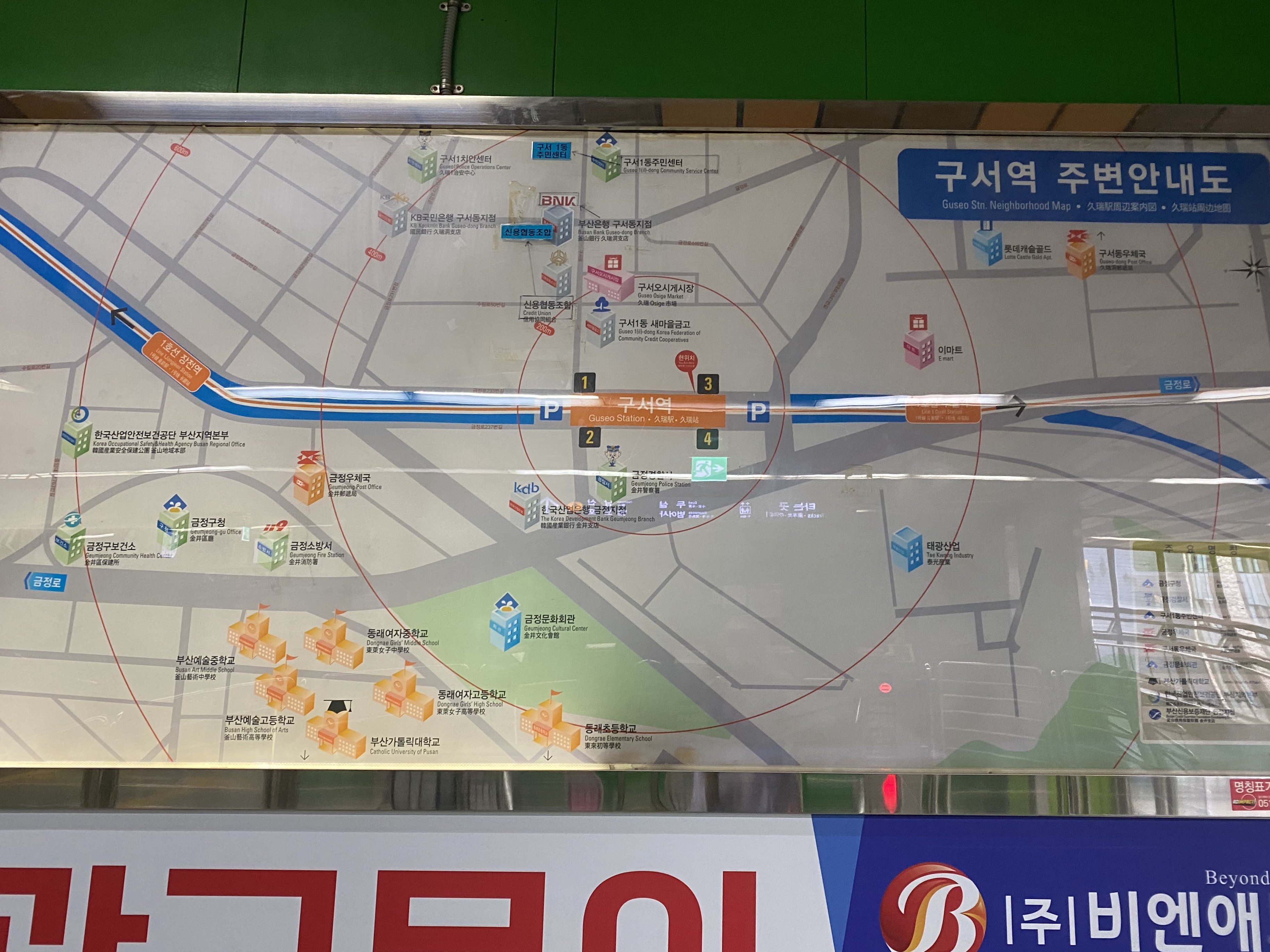 과거 역명은 구서동역이었지만 2010년 2월 24일에 역명이 변경되었습니다. 이 역에는 지상에서 바로 연결되는 엘레베이터가 설치되어 있고 이 역부터 동래역까지 지상 구간입니다.