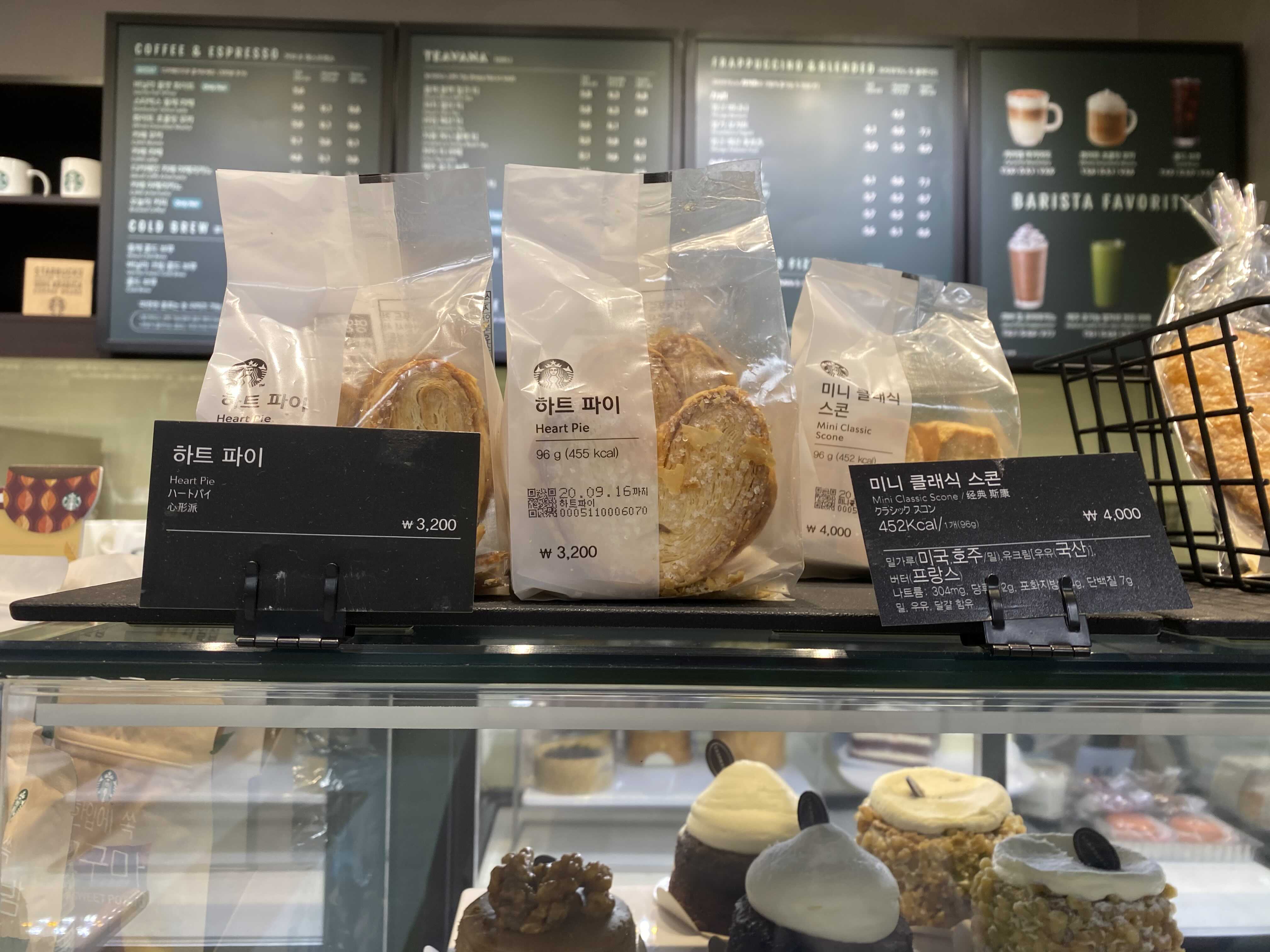 하트파이는 96g 455kcal 3,200원 미니 클래식 스콘은 개당 4천원입니다. 스콘이 은근 고칼로리입니다. . 452kcal이니 말입니다. 사실 스타벅스 디저트 종류는 죄다 칼로리 생각하면 절대 못먹습니다^^ 미친 칼로리라고 봐도 무방하지만 맛있으면 0칼로리 아니겠습니까 ㅎㅎ