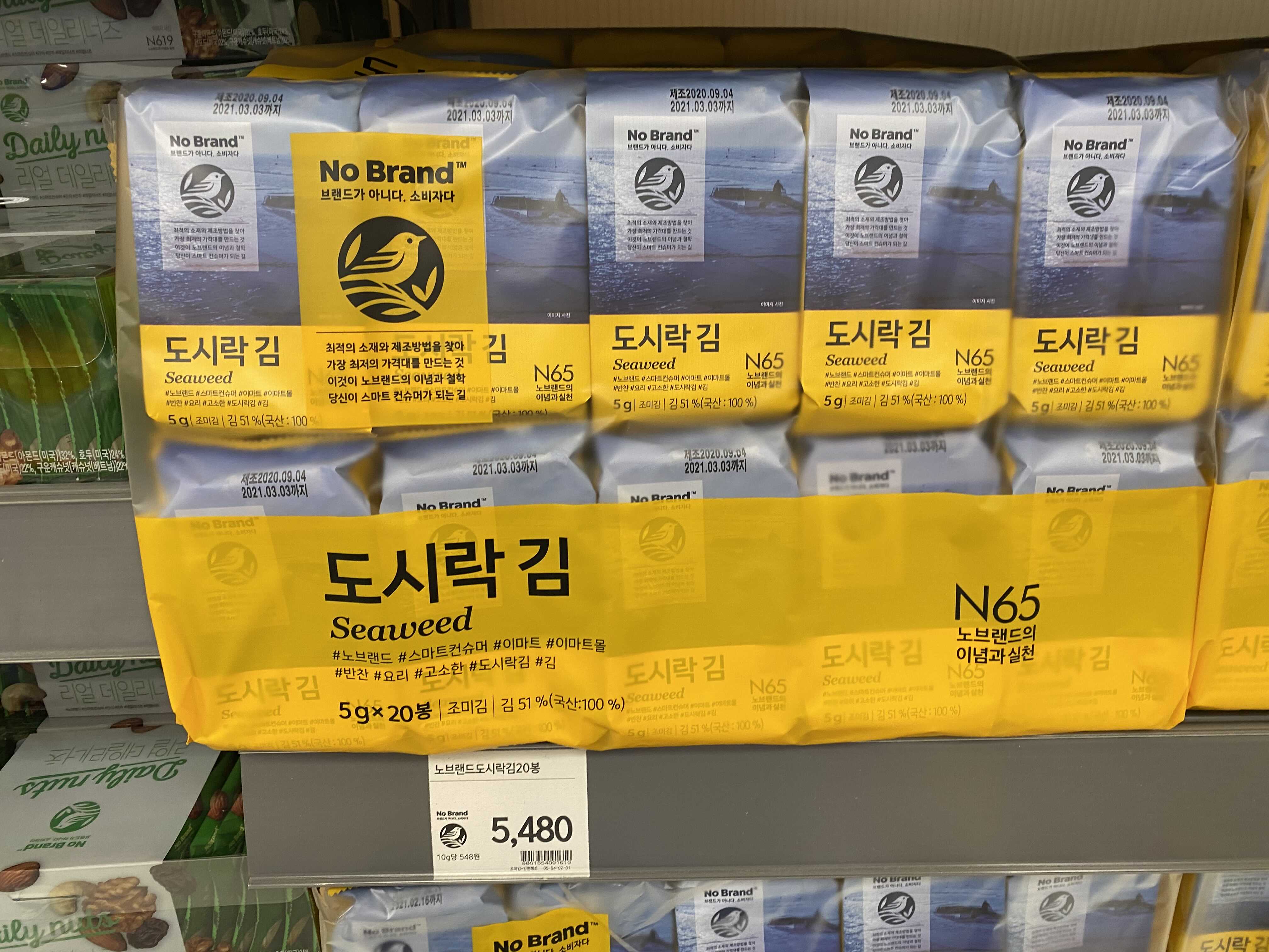 집에 항상 있어야 하는 반찬인 김입니다. 노브랜드 도시락김은 20봉에 5480원입니다.