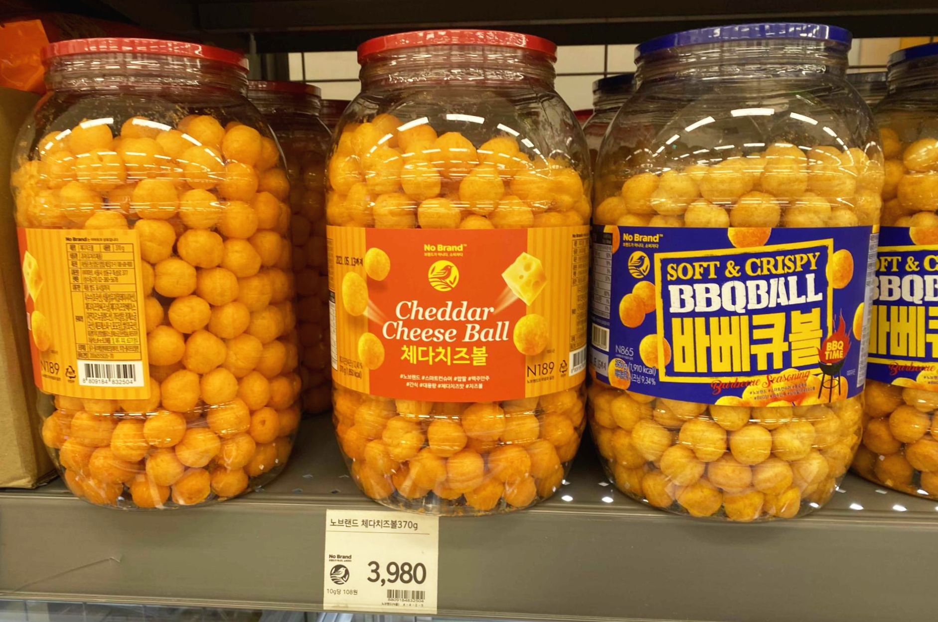 그리고 이것도 인기 짱 많은 노브랜드 과자 중 하나인 바로 체다치즈볼(370g) 3,980원 입니다. 체다치즈볼 옆에 바베큐볼도 있습니다. 인간 사료 수준이니 드실 때 주의하시기 바랍니다 ㅋㅋ