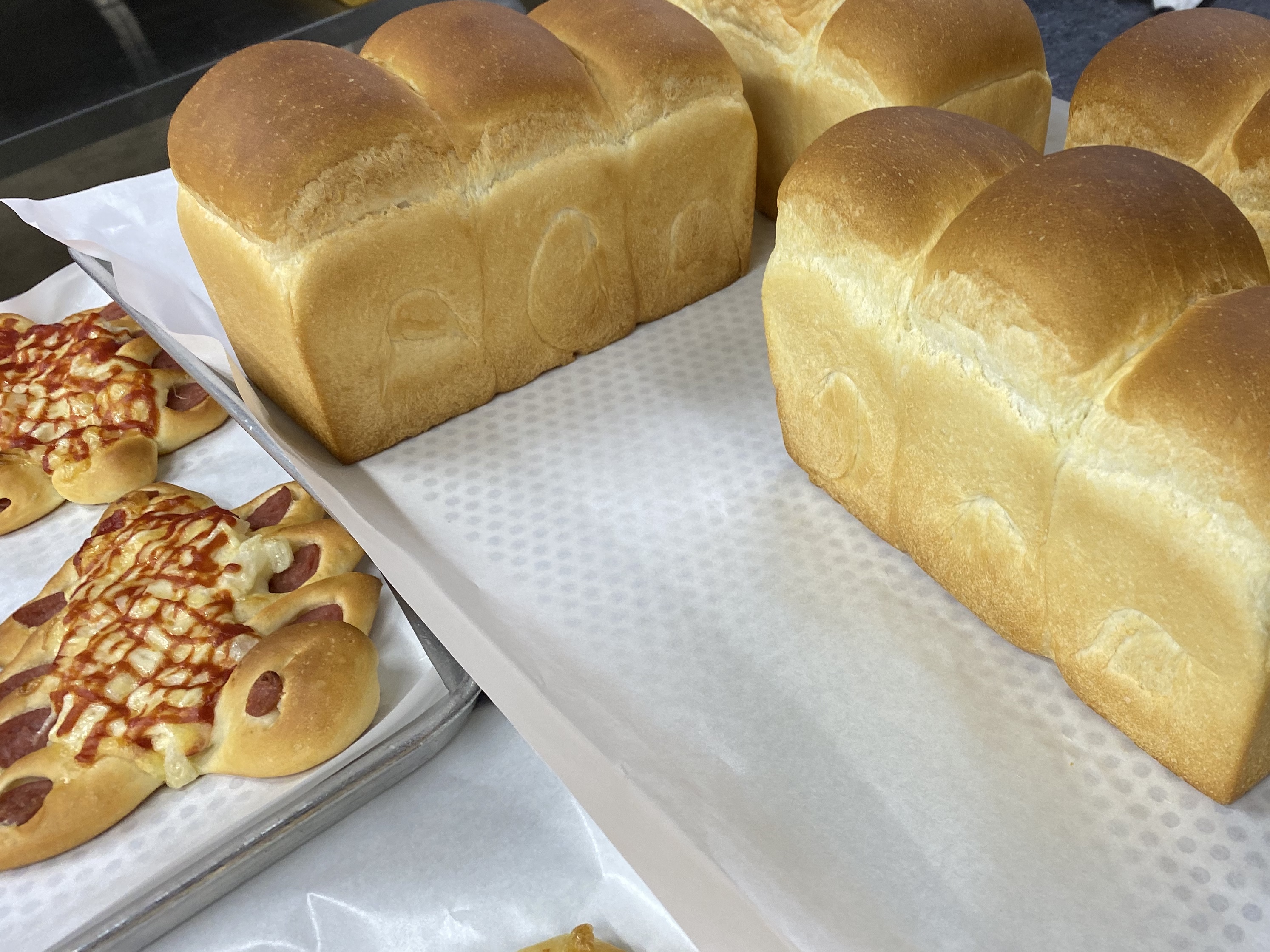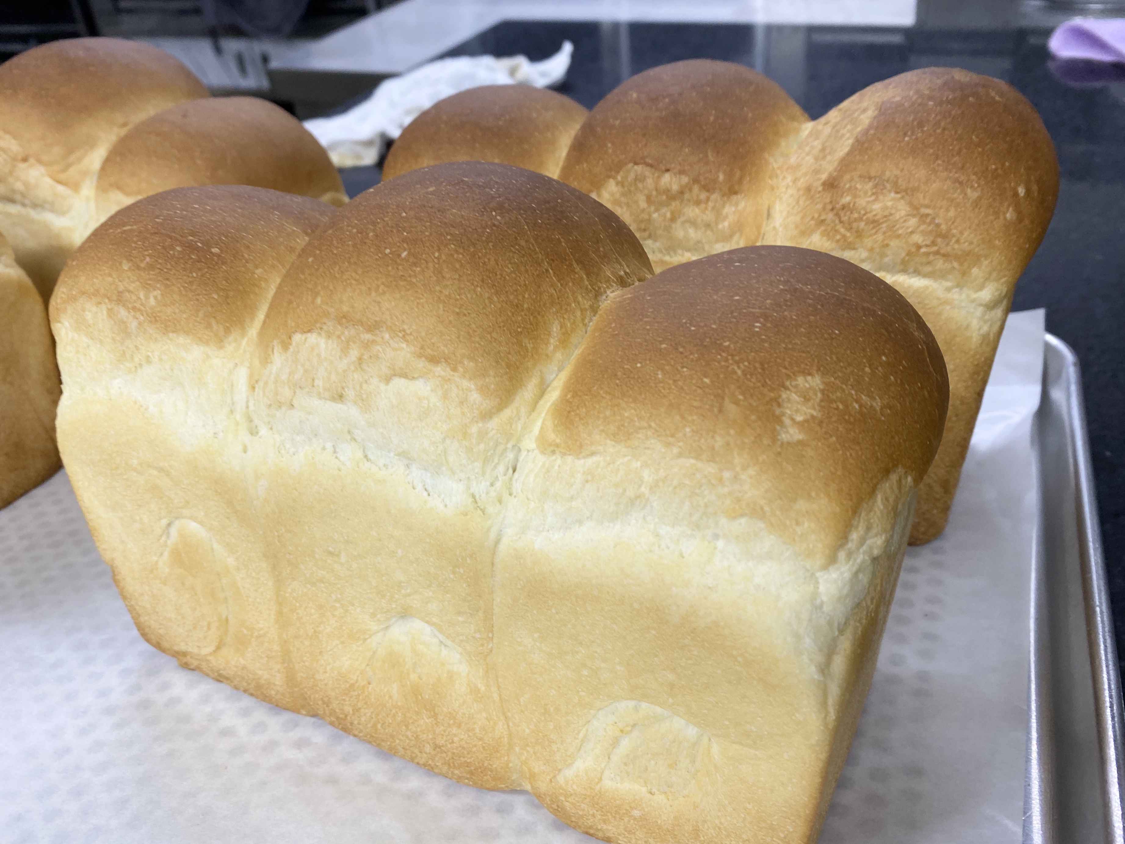 높이가 죄다 다른 식빵도 역시 딱봐도 망한것 같습니다. 애초에 만들 때 세덩이 모두 말린 방향이 같아야 하고, 네모난 틀에 딱딱 맞춰 넣어야 합니다. 그리고 빵들끼리 적절한 간격으로 구워야 색깔이 잘 나옵니다.