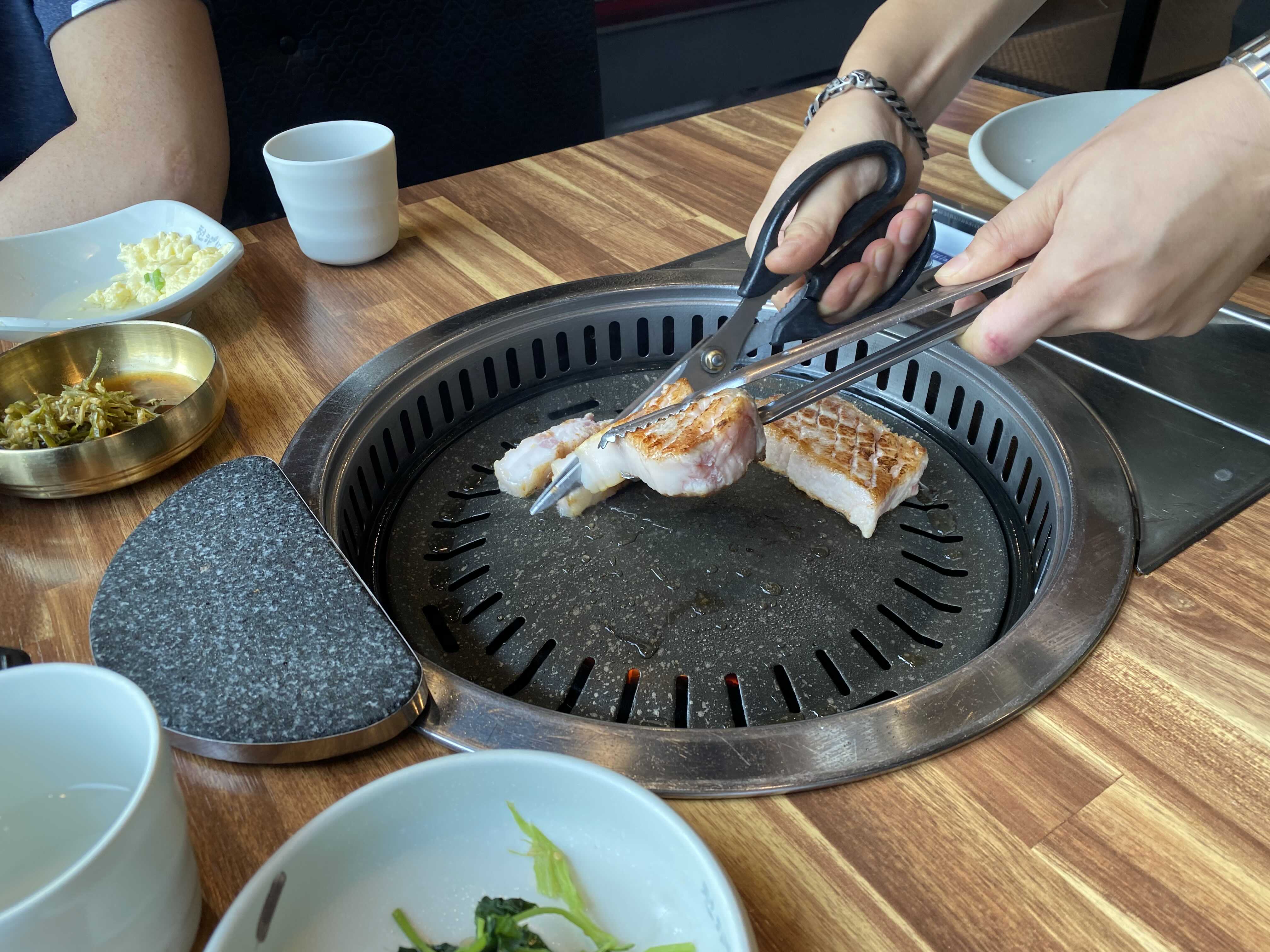 직원분께서 친절히 구워주셔서 저희는 먹기만 하면 됩니다. 고깃집 오면 굽느라 먹느라 정신없고 굽는 사람만 구워서 빈정상하기 마련인데 사상 회식장소로 추천하는 이유 중 하나가 본인이 굽지 않아도 되기 때문입니다! 막내라서 항상 고기굽기담당이었는데 여긴 그런거 필요없습니다