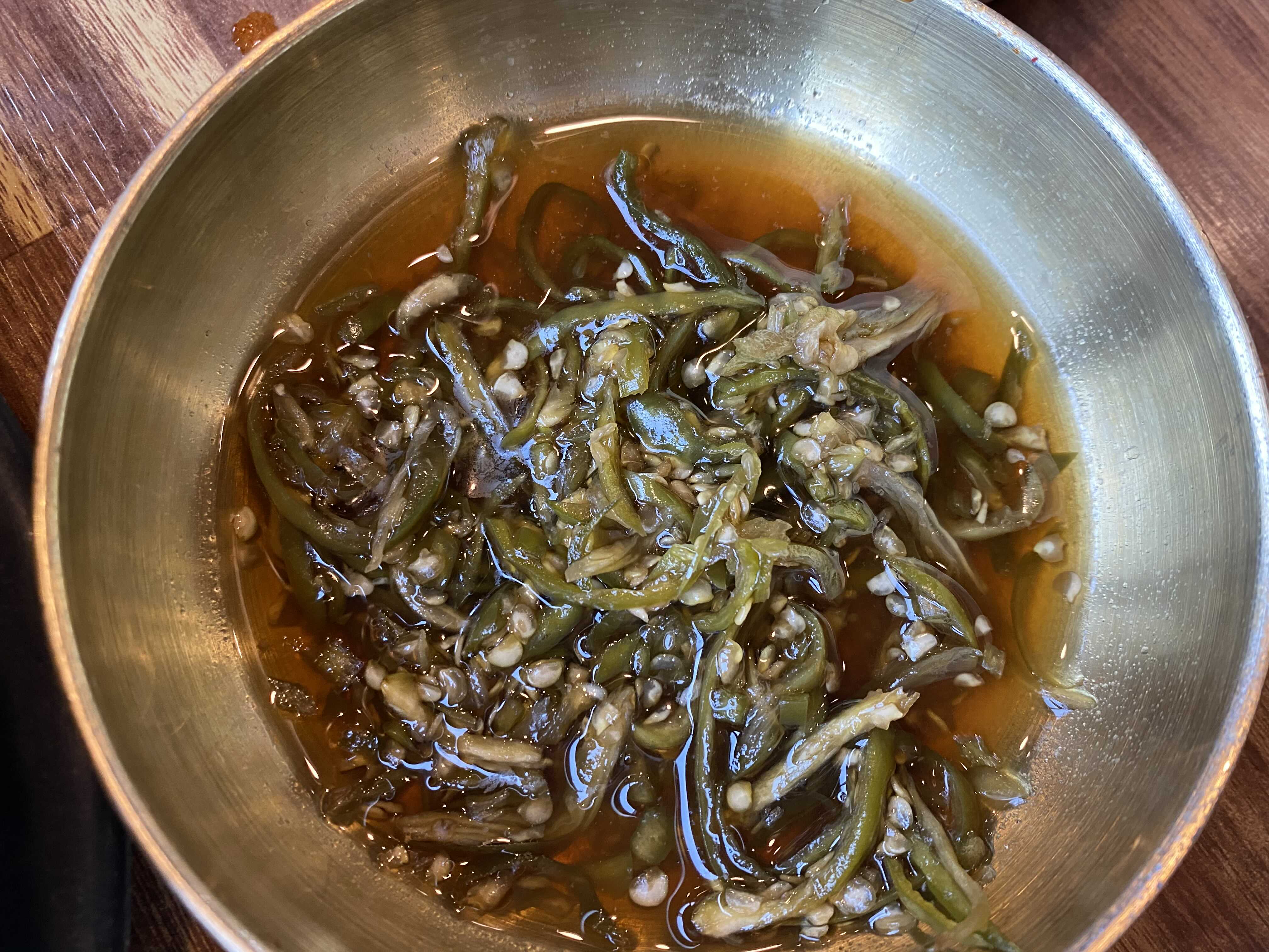 제일 맛있었던 밑반찬 은 요 고추장아찌(?)입니다