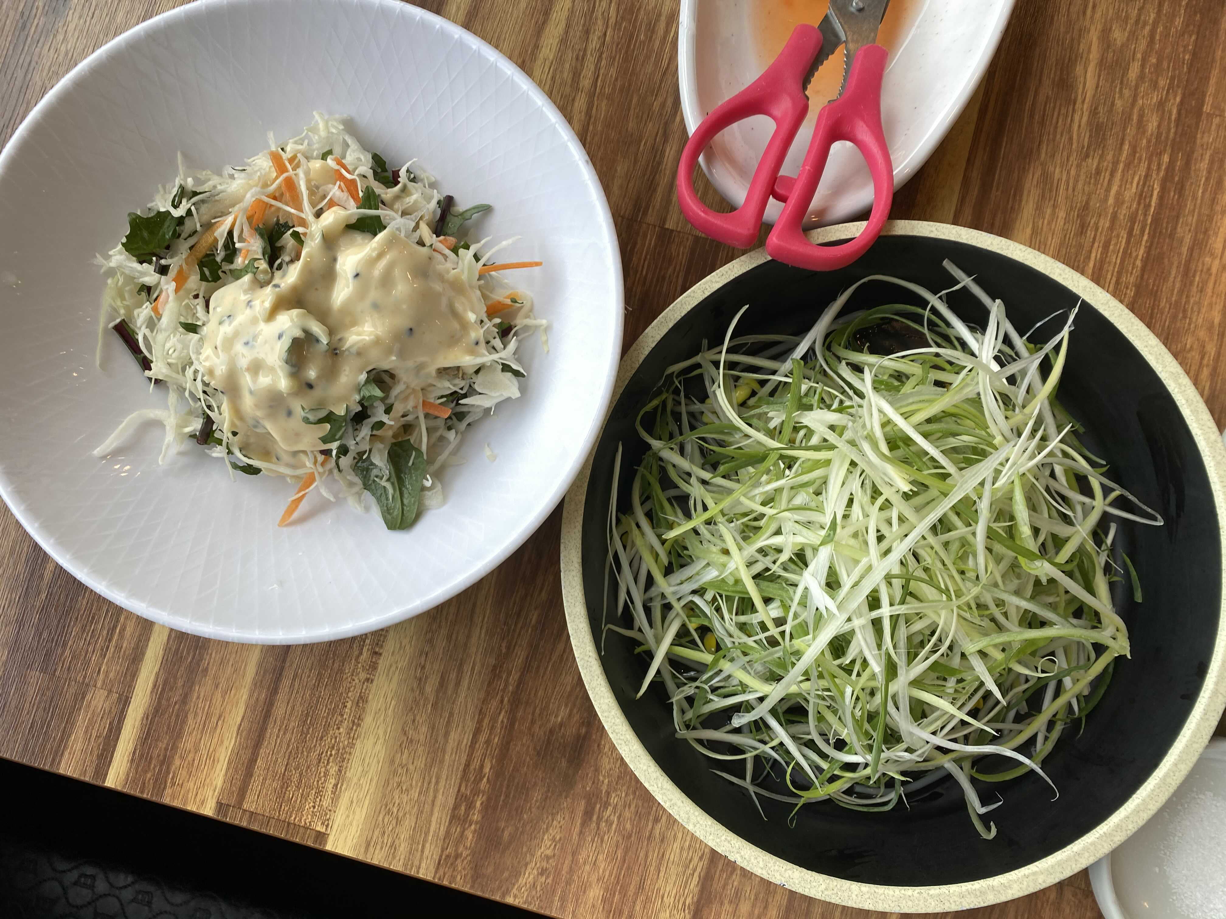 제가 좋아하는 샐러드 반찬과 파무침 외 여러가지 밑반찬들이 쭈루루루르륽 먼저 나옵니다.