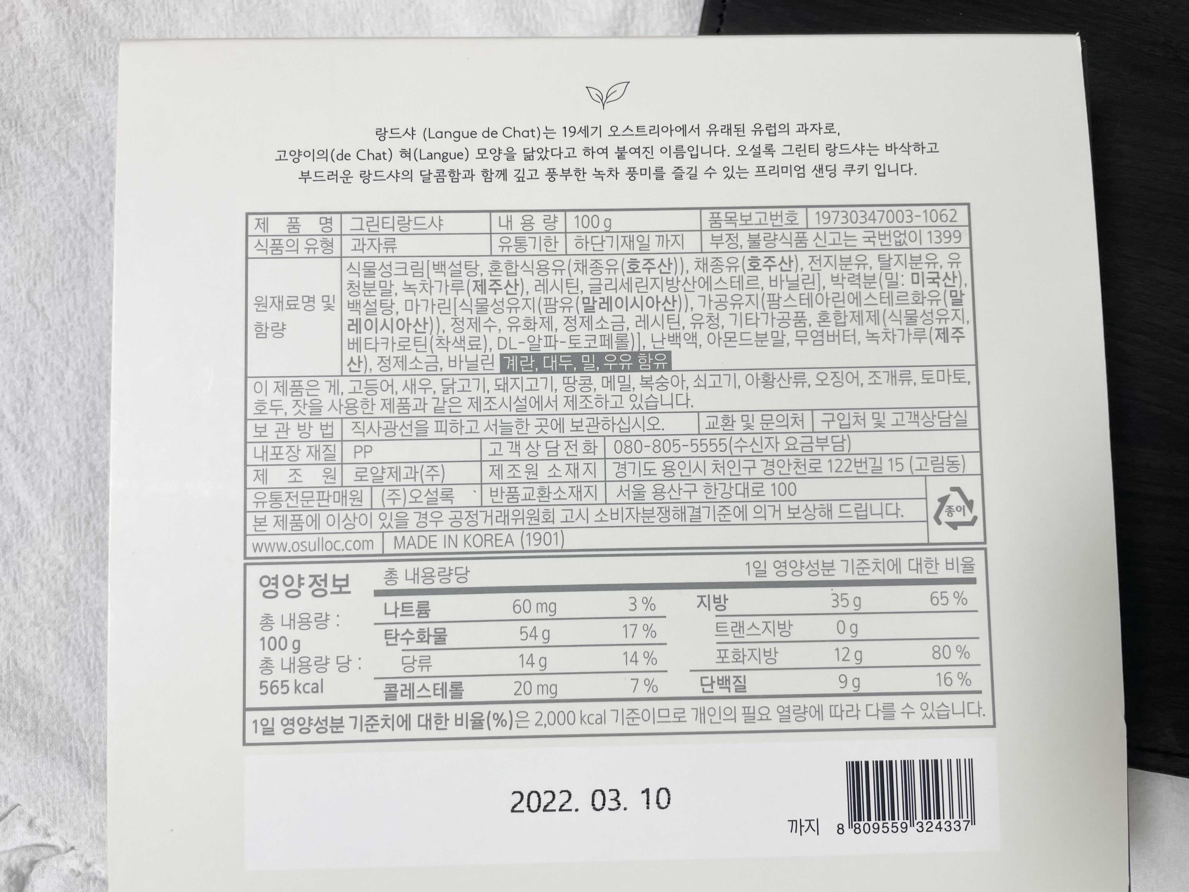 오설록의 그린티 랑드샤 입니다