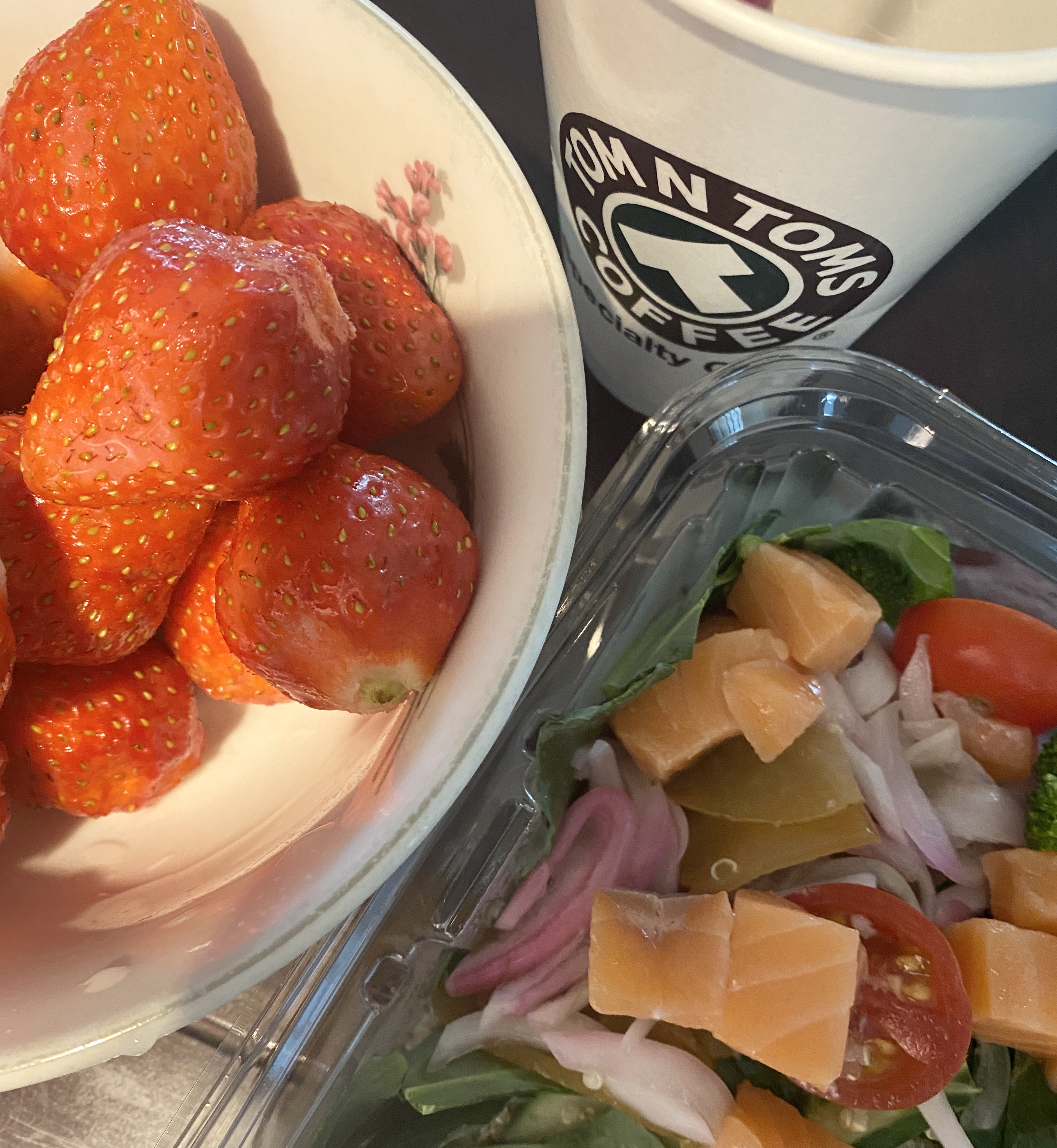아빠가 사온 딸기의 조화가 좋습니다