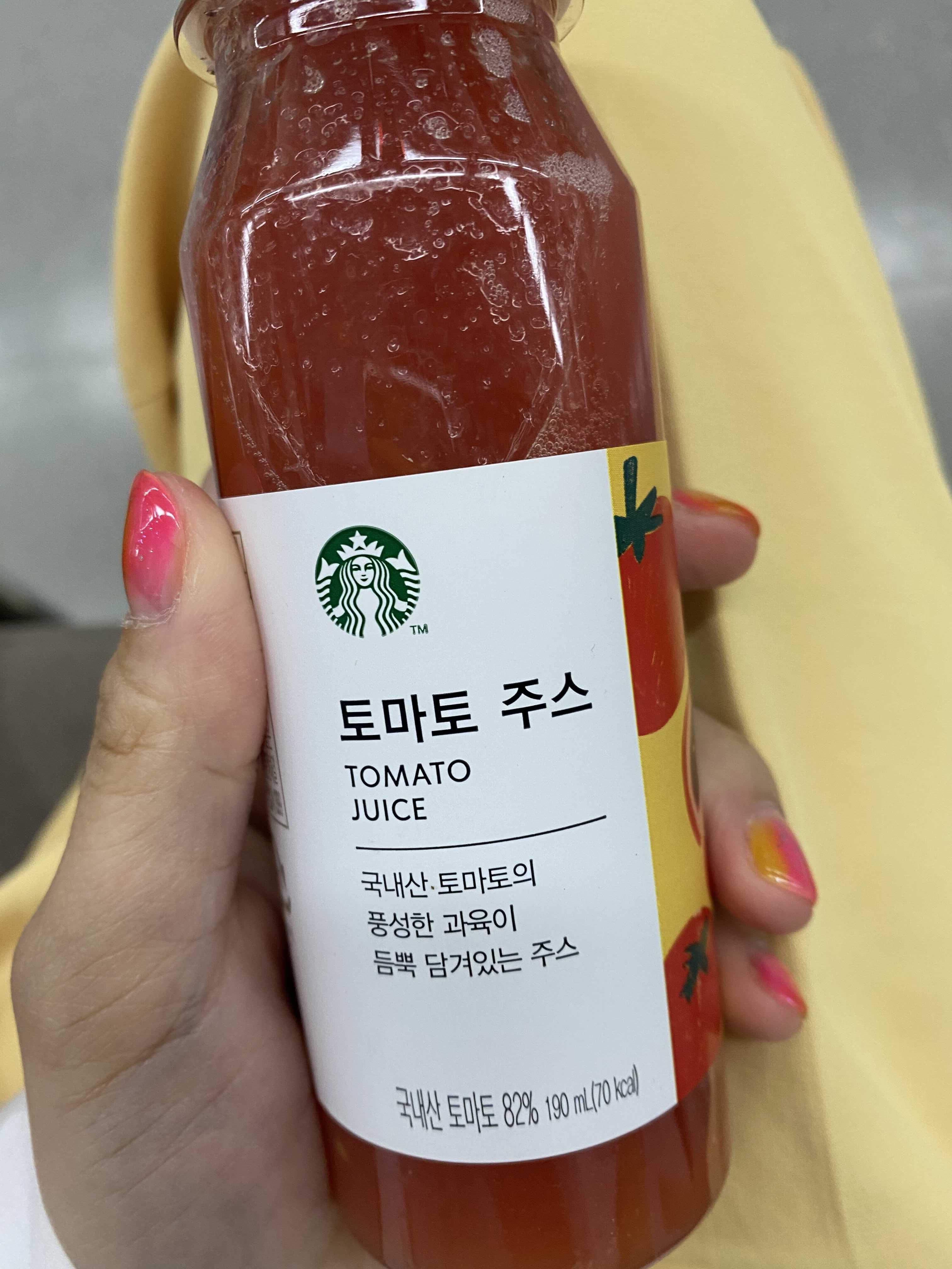 스타벅스의 토마토주스와 닭가슴살샌드위치입니다.