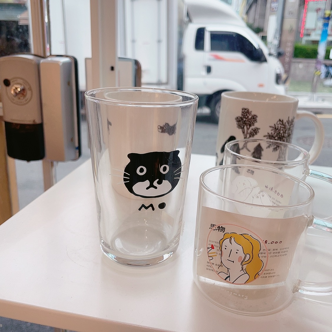 맨 처음 보이는 고양이 컵! 너무 귀엽습니다.