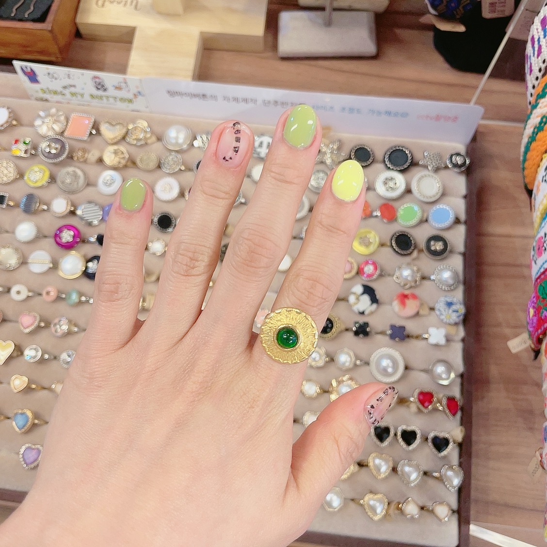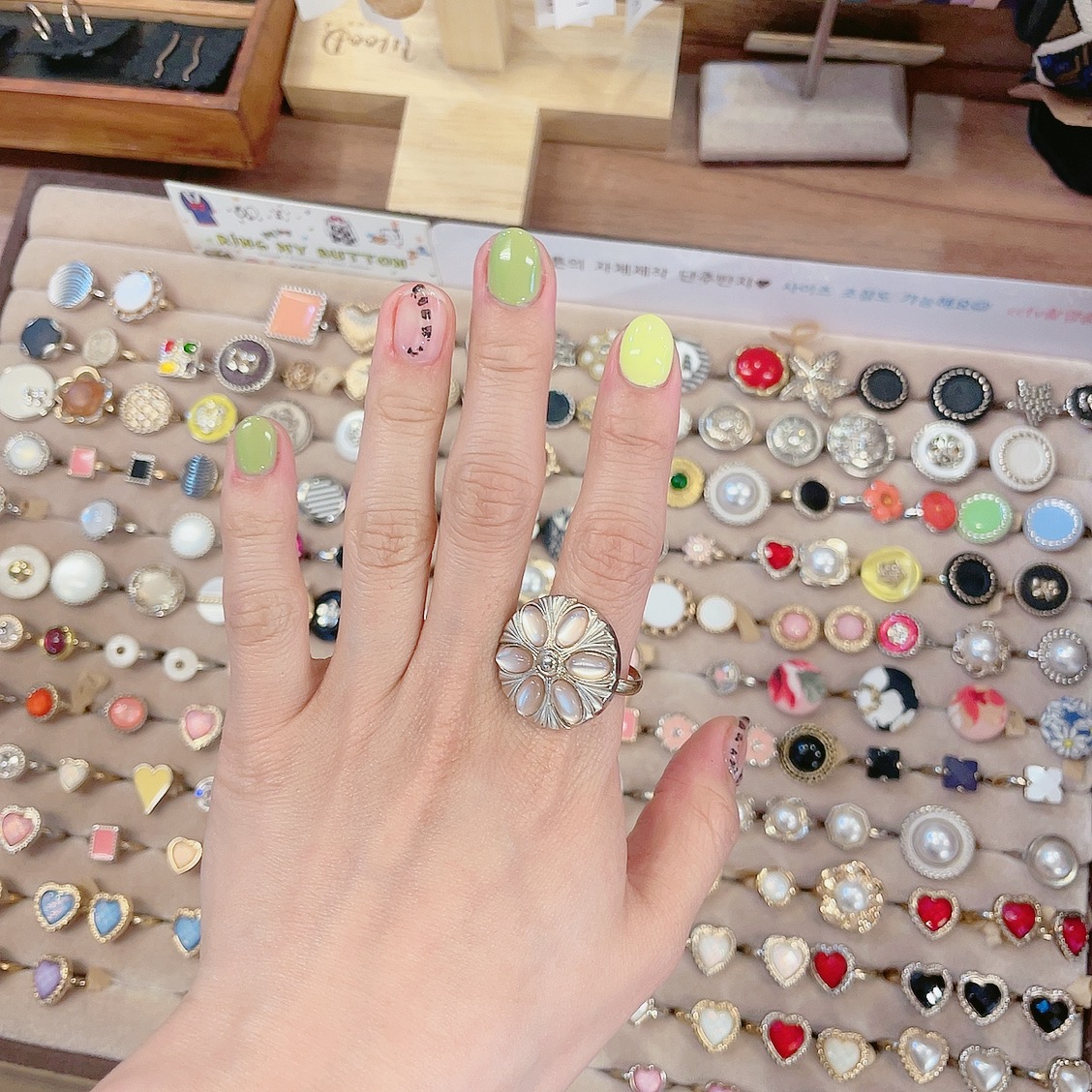 오늘 네일컬러와 제일 잘 어울리는 아이로다가 한번 껴봤습니다