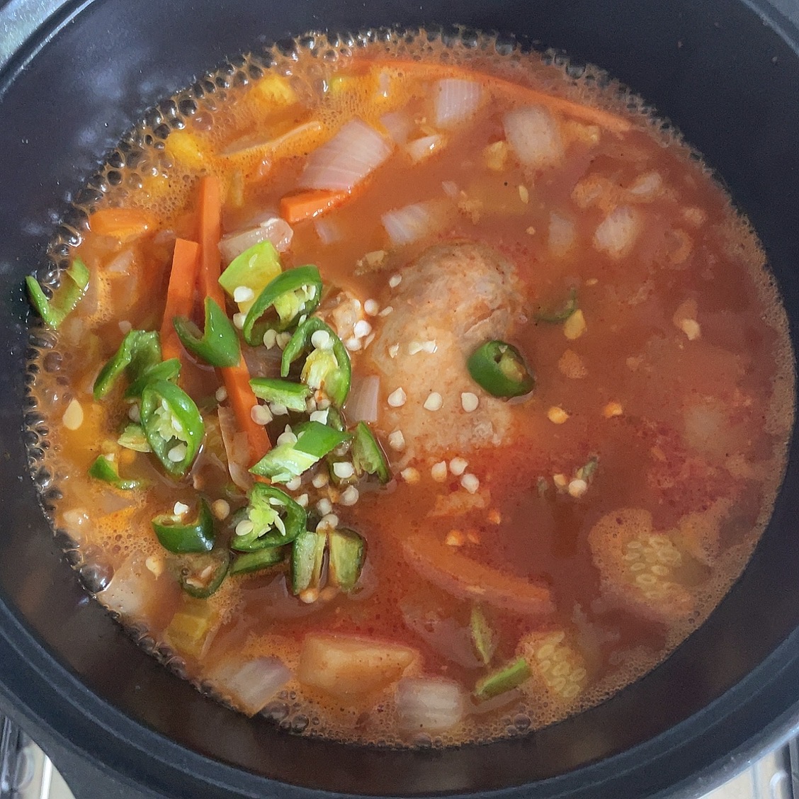 청양고추 때려놓고 보글보글 졸이는 중이었는데