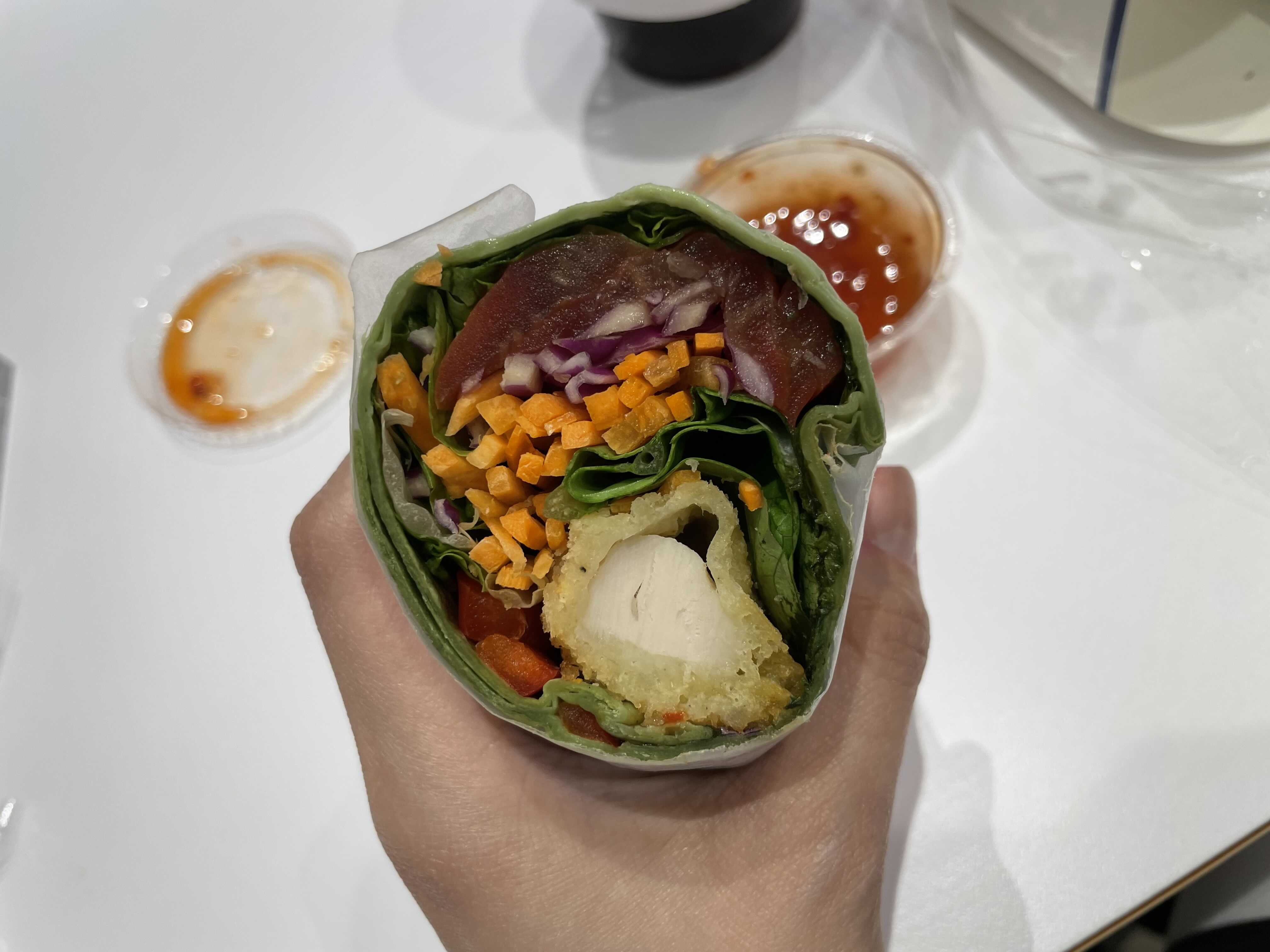 다이어트에 좋은 건강한 치킨커틀릿 샐러드랩입니다.