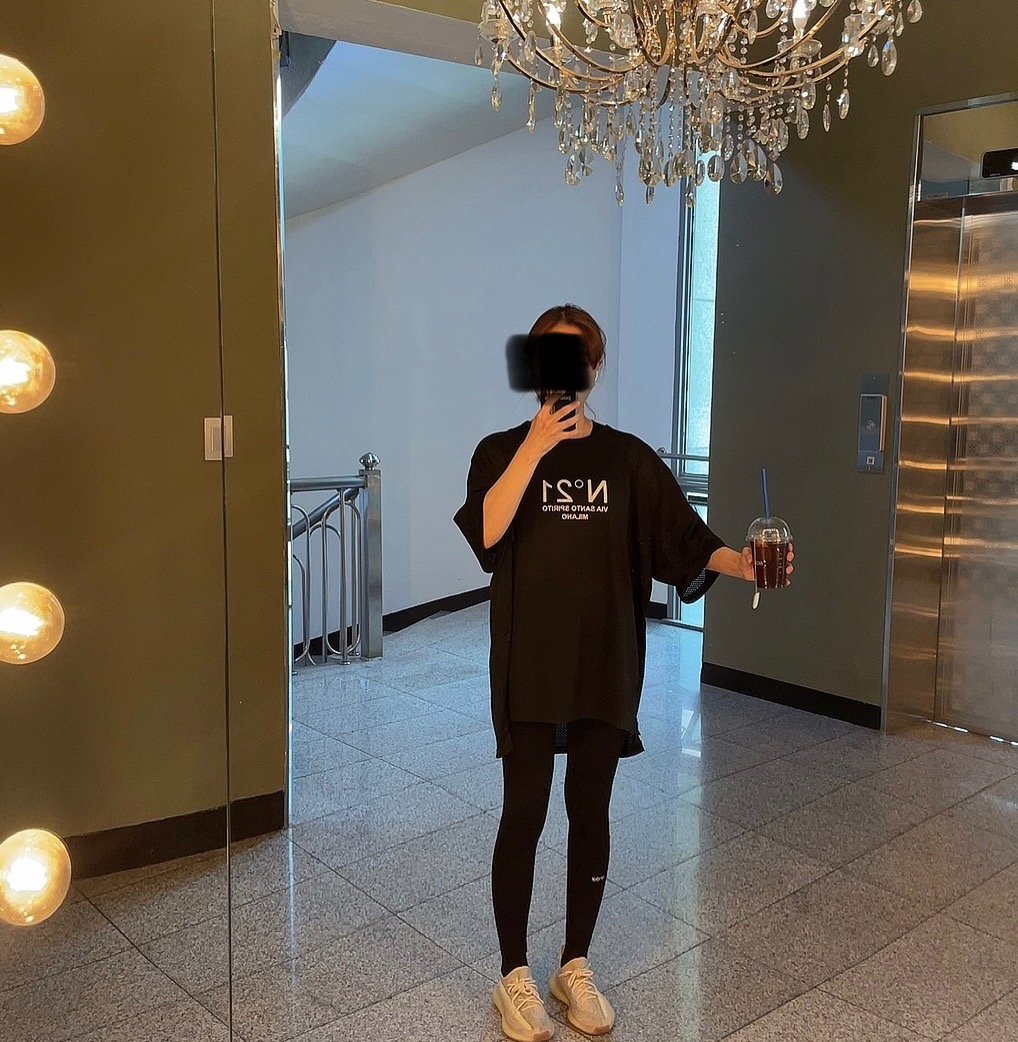 박시한 N°21 반팔티셔츠에 레깅스랑 입으니