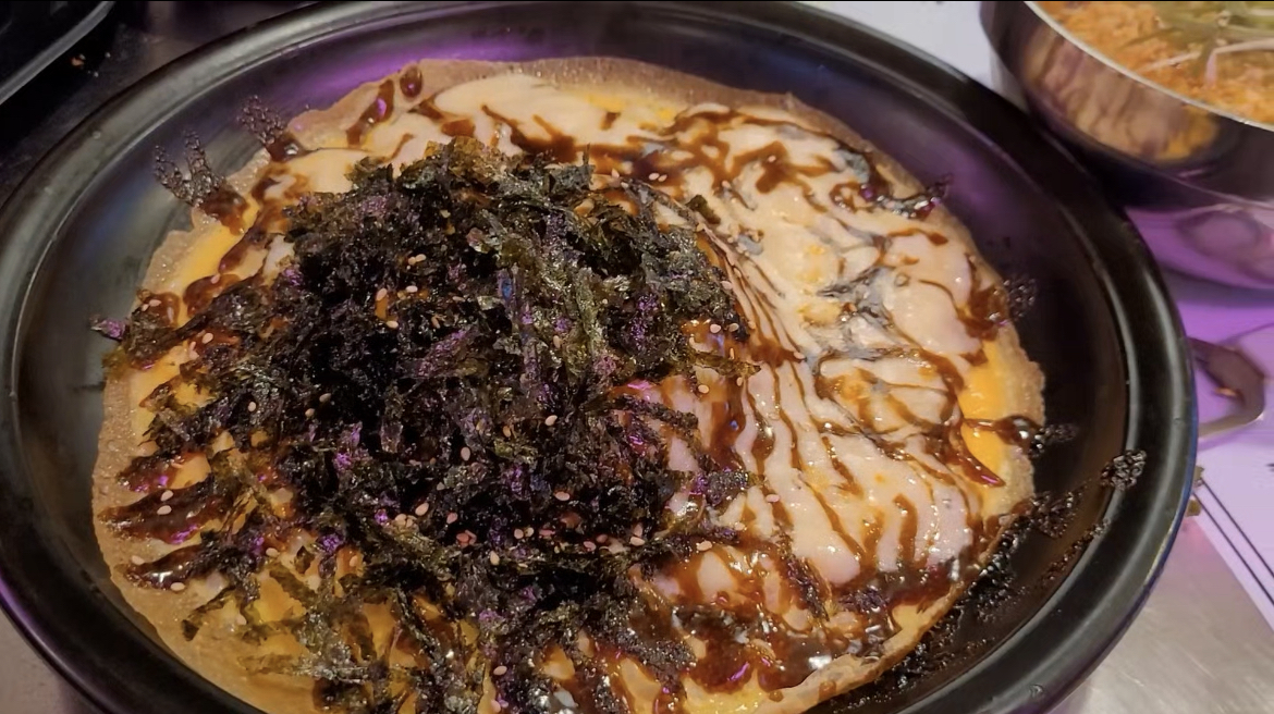 돼지고기기름에 같이 구워진 김치는