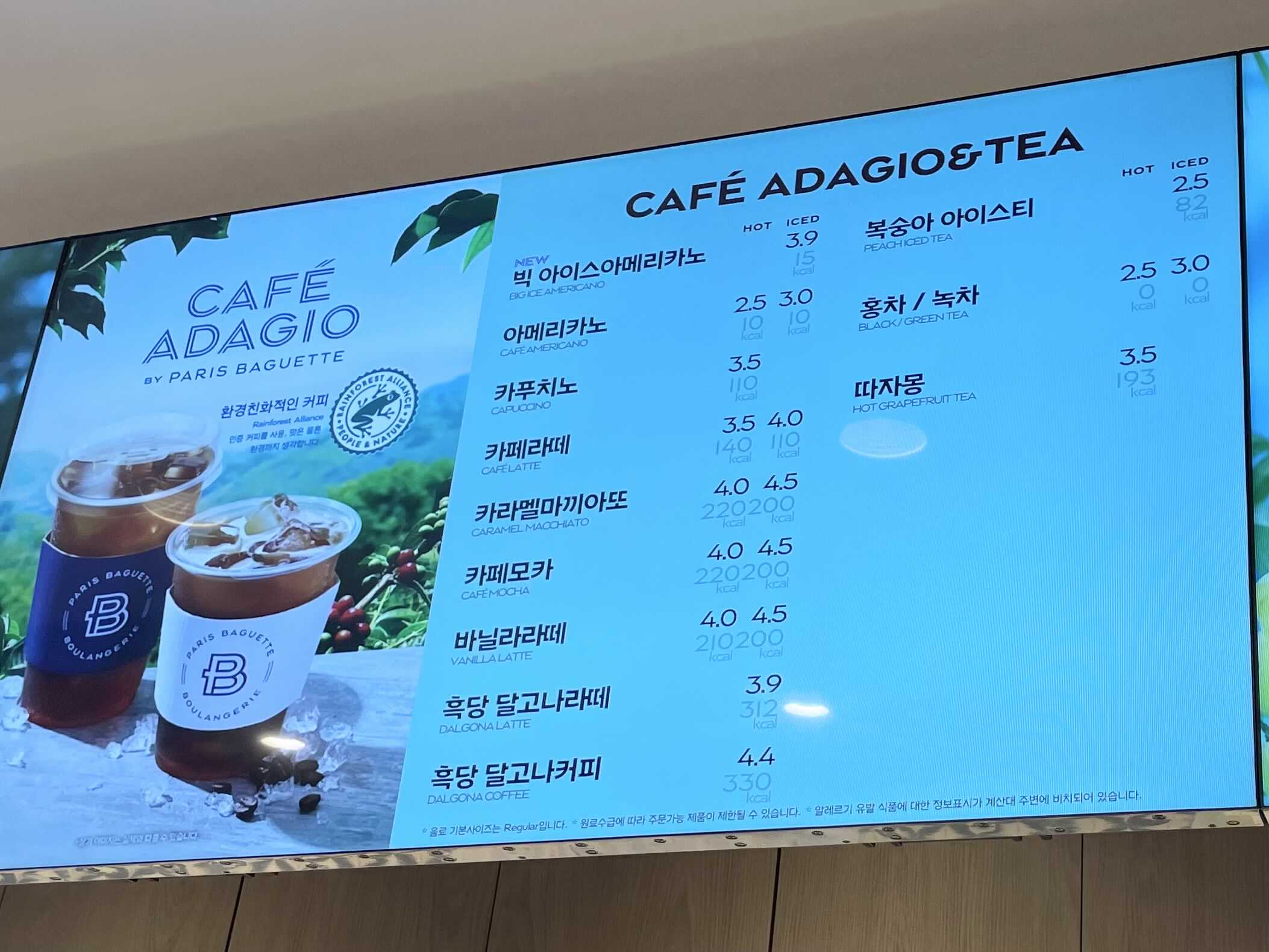 그 외 카페 아다지오의 음료의 가격 정보와 칼로리 알려드립니다.