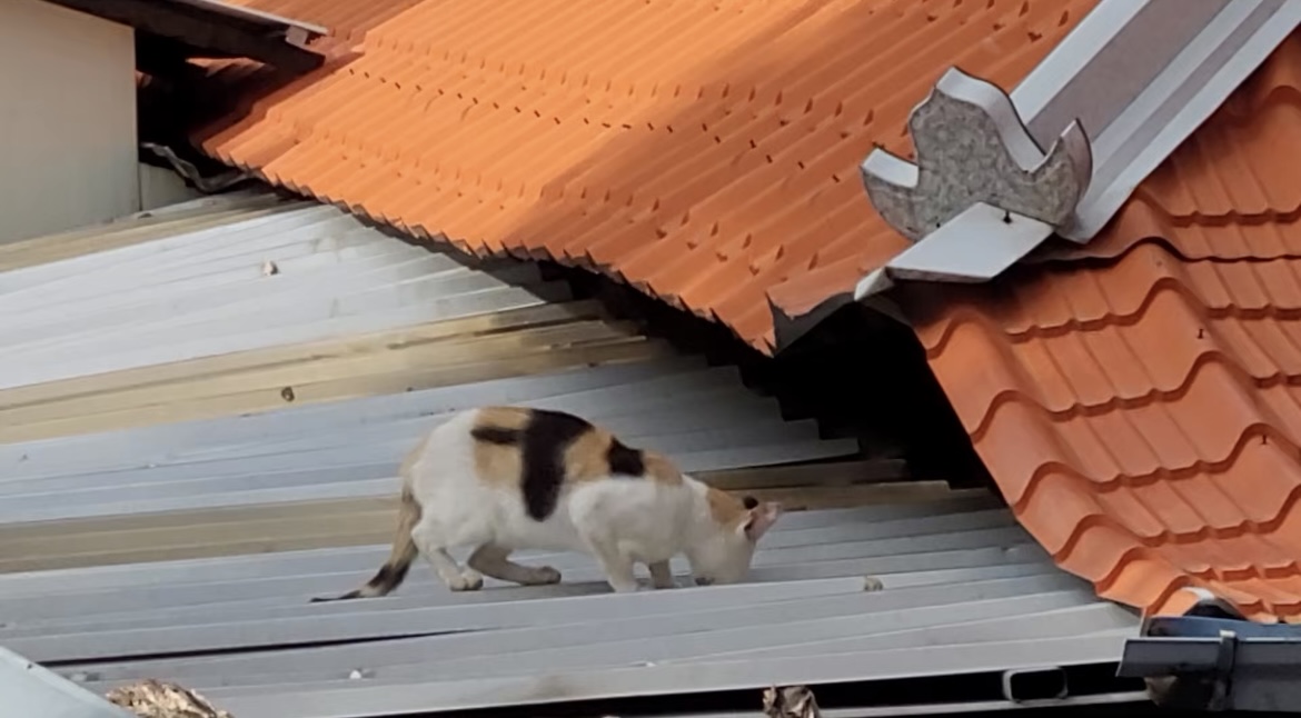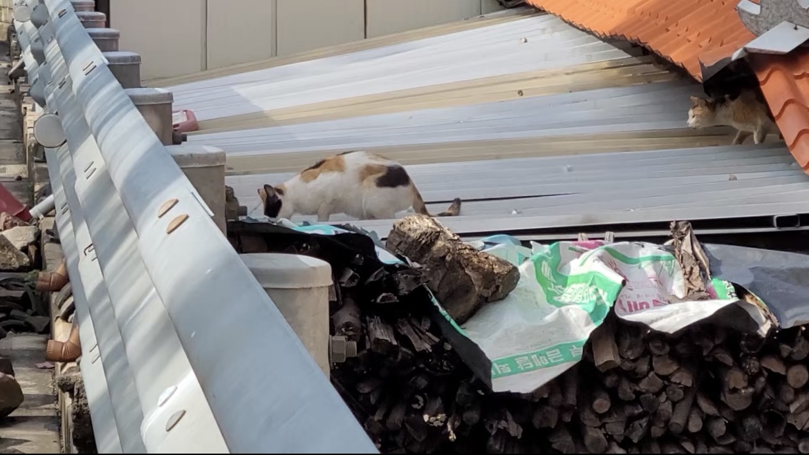 경계하는 지붕의 길냥이들을 보았습니다 ㅠㅠ