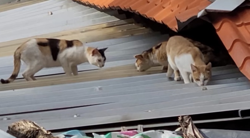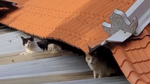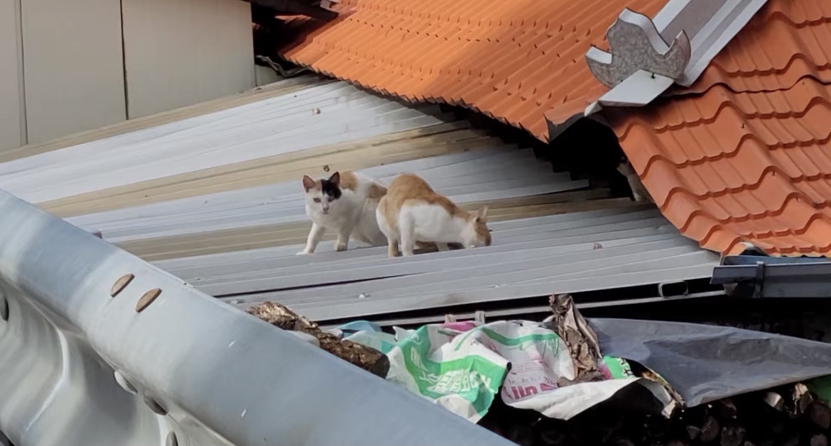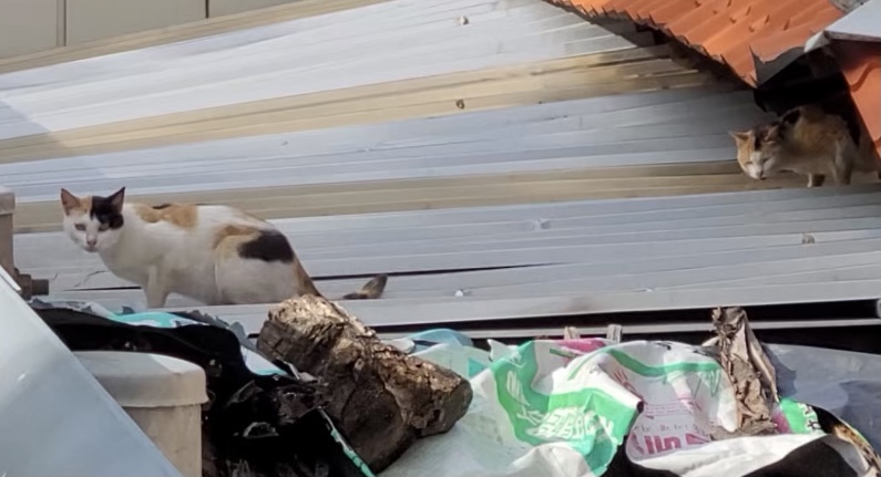경계하는 지붕의 길냥이들을 보았습니다 ㅠㅠ