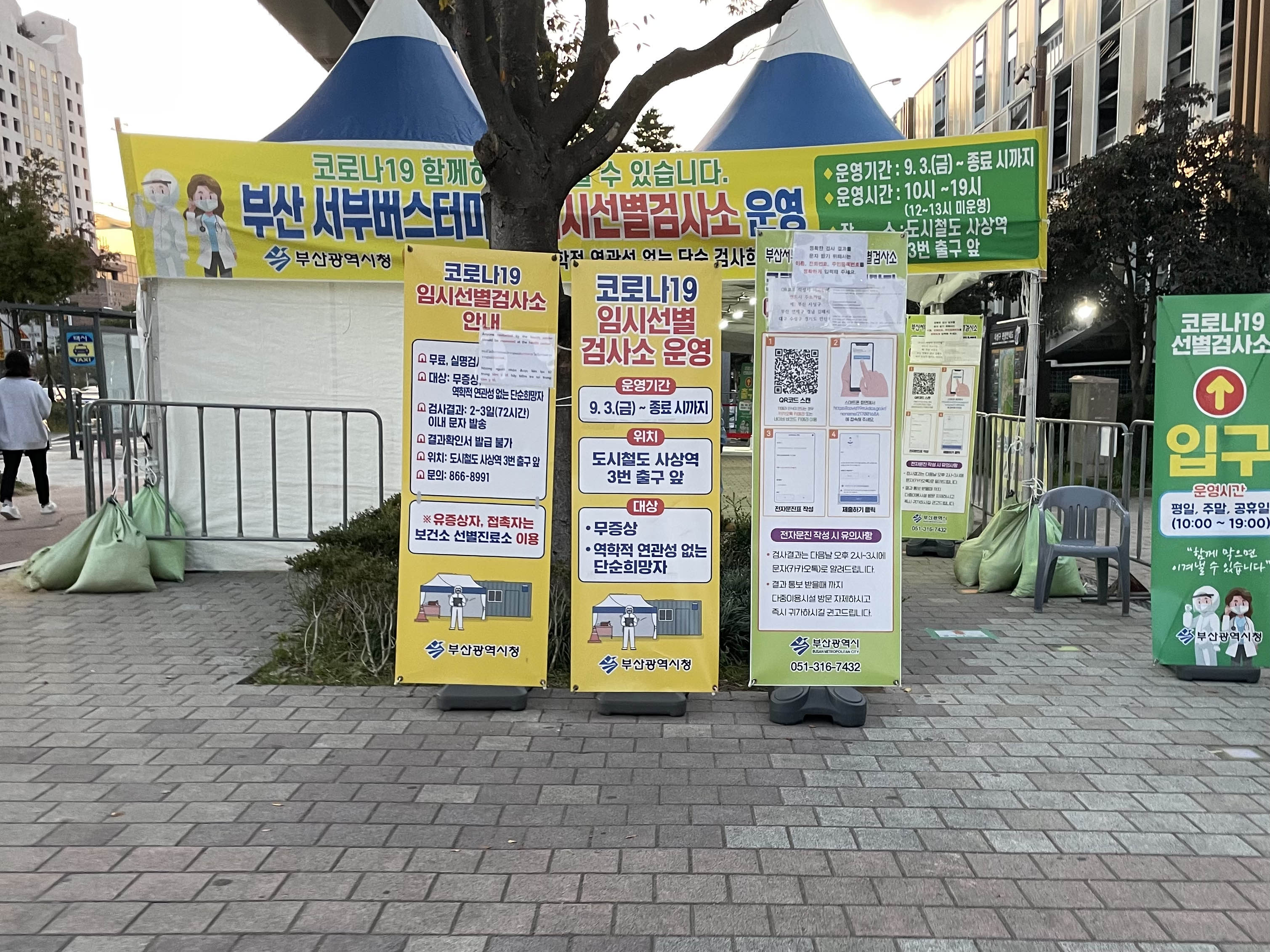 병원 보호자로 가기 위해 받아야했던 코로나검사 부산서부버스터미널 임시선별진료소에서 받고 온 후기입니다.
