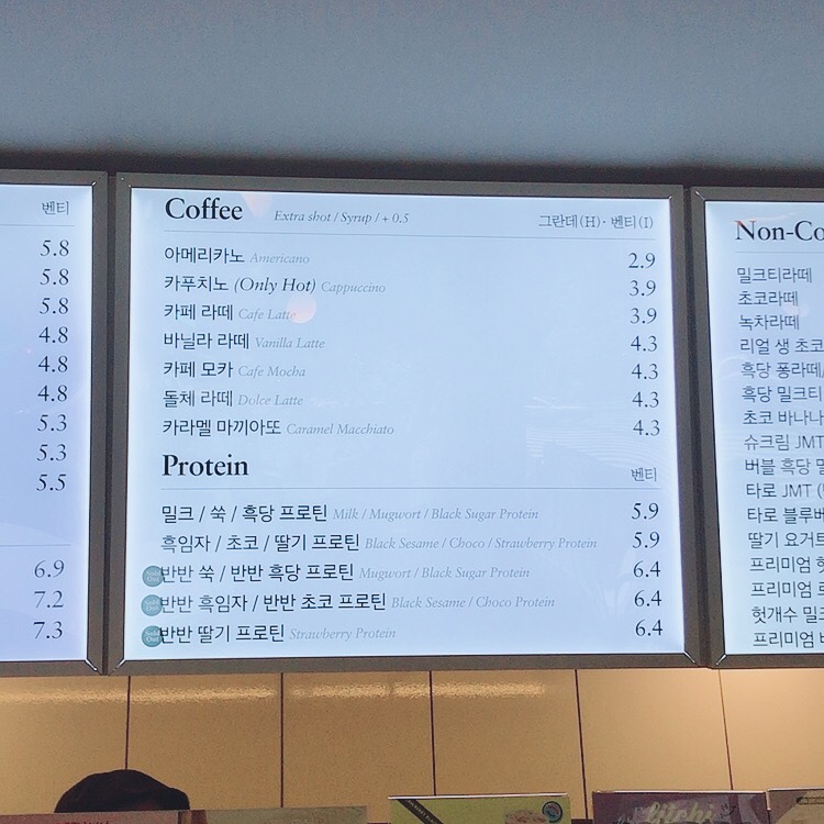 밀크티도 팔고요 민초단이 환영할만한 민트초코 JMT 시리즈도 보였습니다.