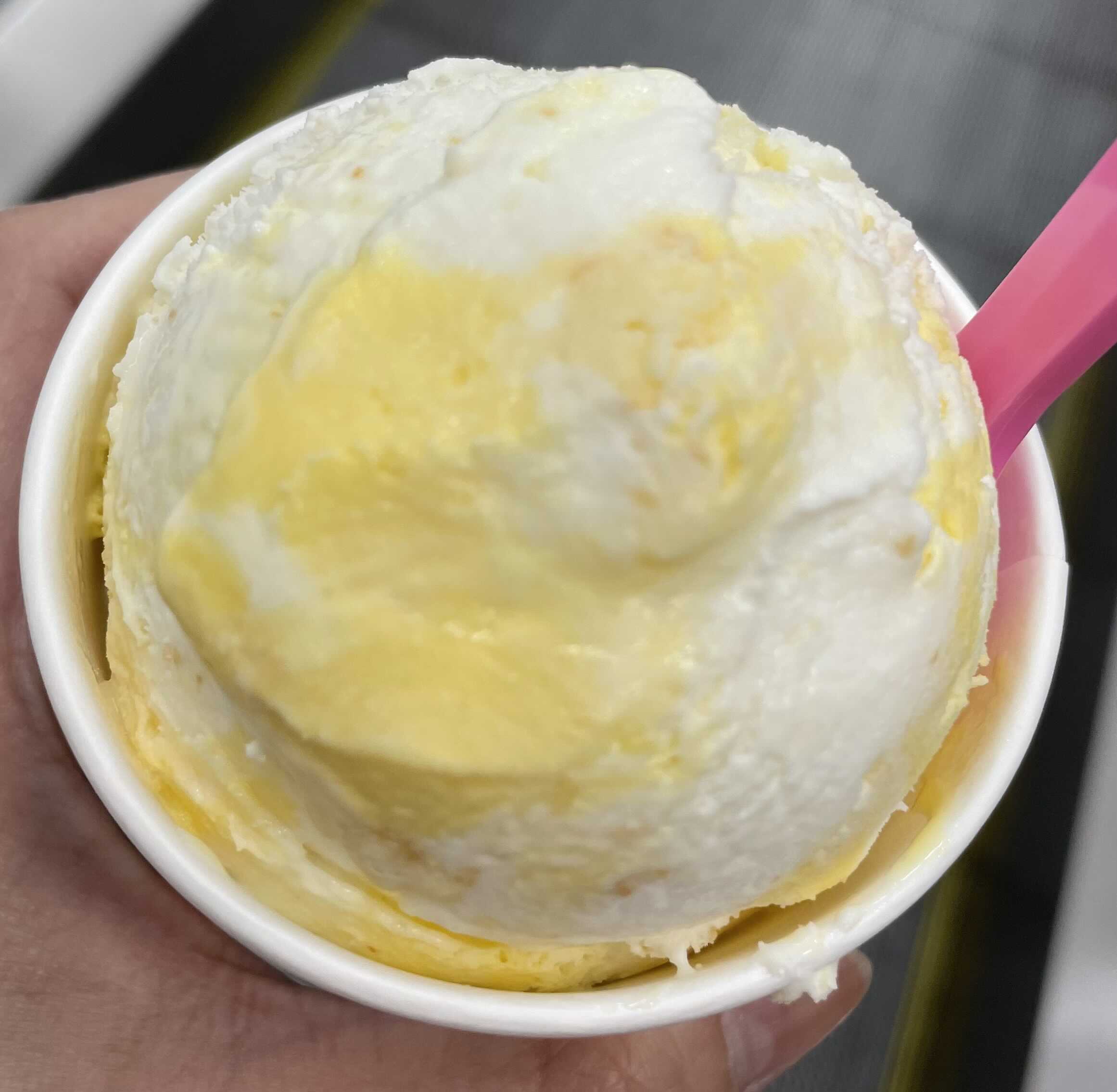 싱글레귤러컵에 받아서 장보면서 먹었습니다. 이때가 오후4시쯤이라 좀 출출했거든요.