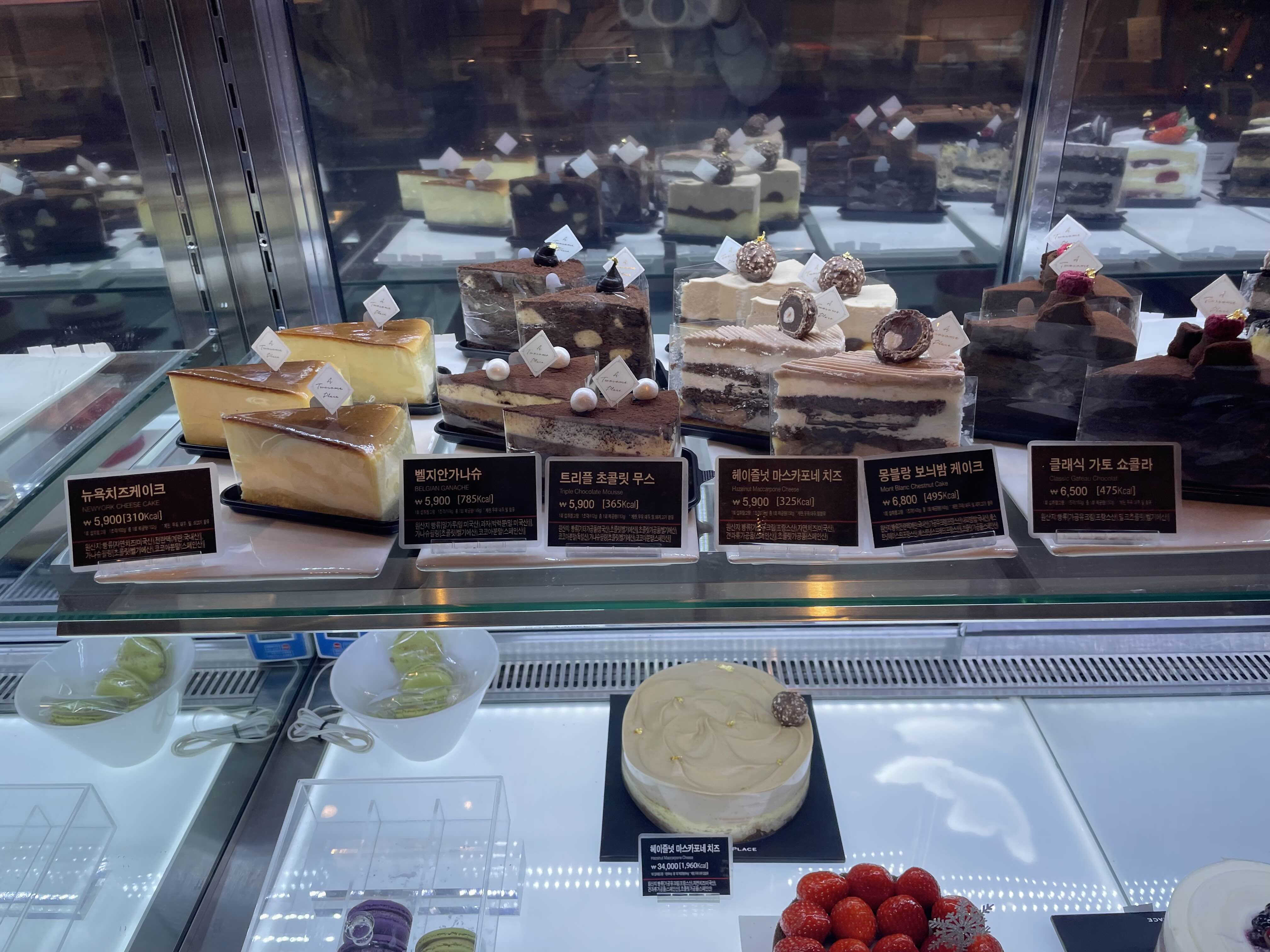 먼저 진열되있는 투썸플레이스 조각케이크들과 가격 칼로리 함께 보시겠습니다.