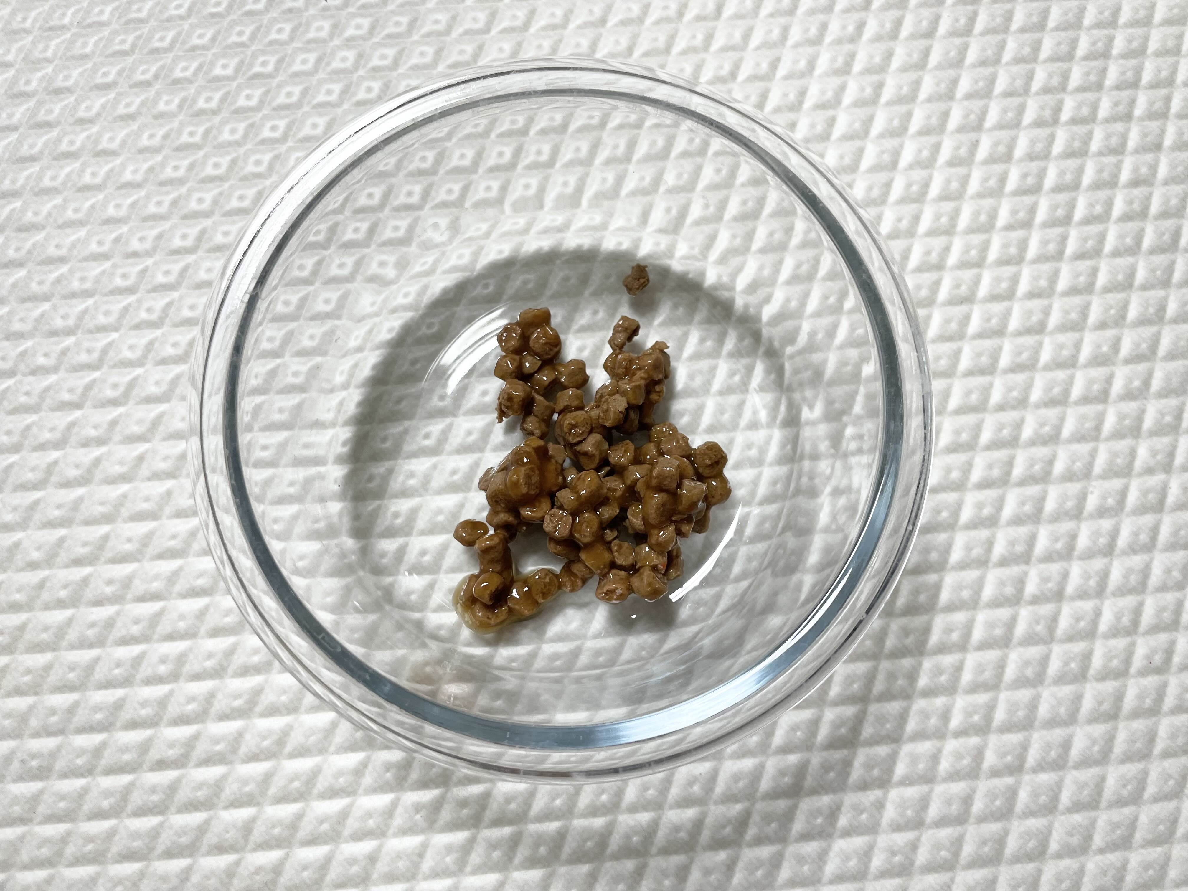 키튼 인스팅티브 젤리 파우치를 뜯고 투명그릇에 담아봤는데 동글동글한 것이 아주 귀엽습니다 ㅋㅋ