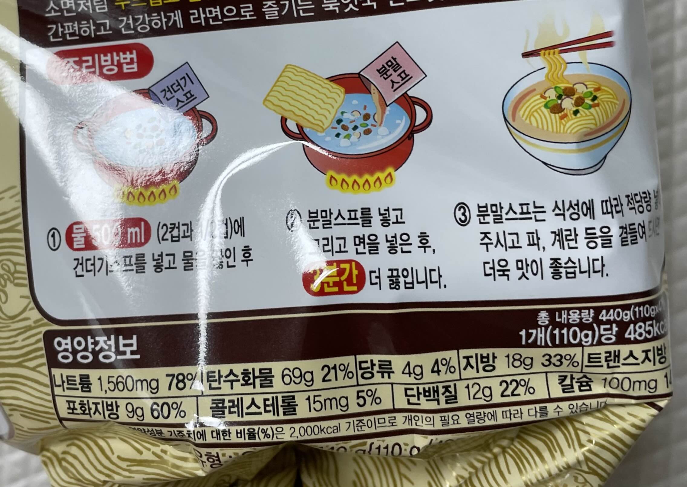 해장국 대신 먹는 북엇국라면의 칼로리는 485kcal로