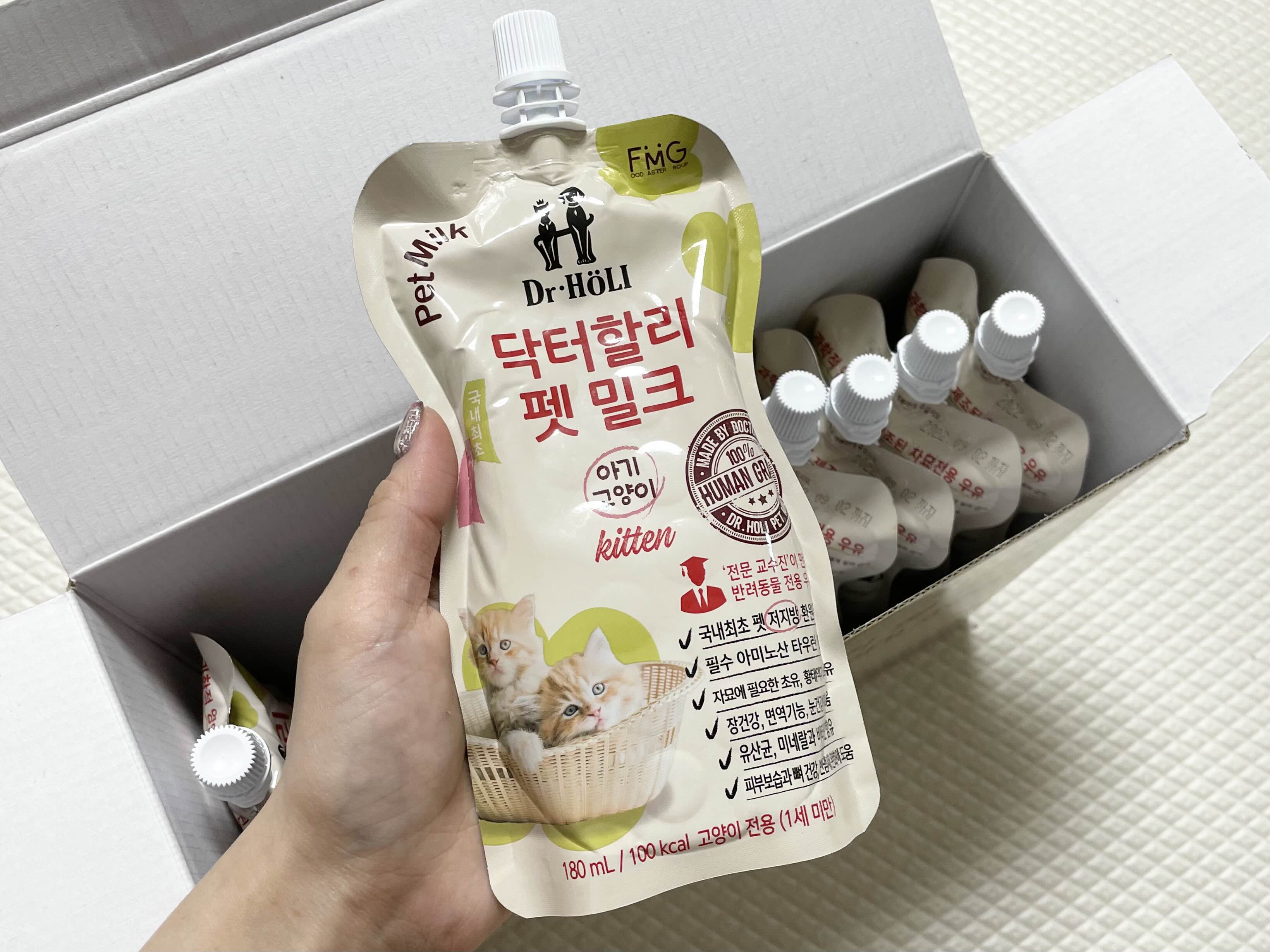 아기고양이 우유는 시중에 여러 회사에서 판매하지만 저는 닥터할리 펫밀크로 선택했습니다.