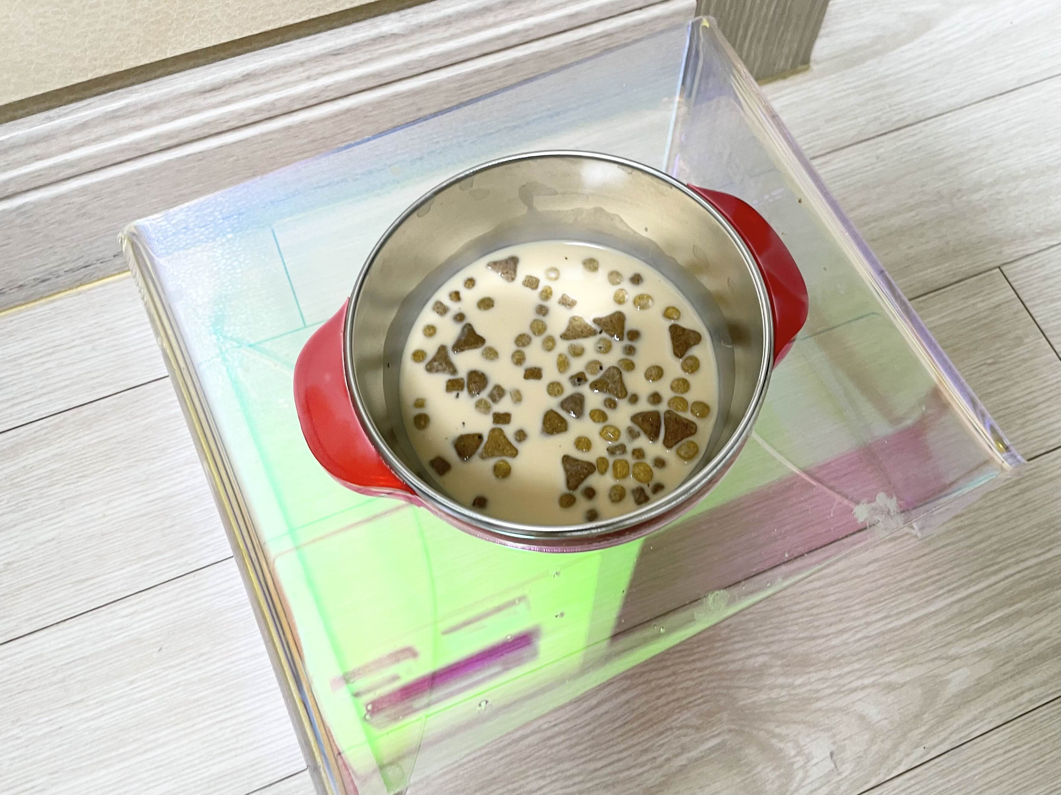 그릇에 캣잎가루도 약간 같이 떨어뜨렸고요