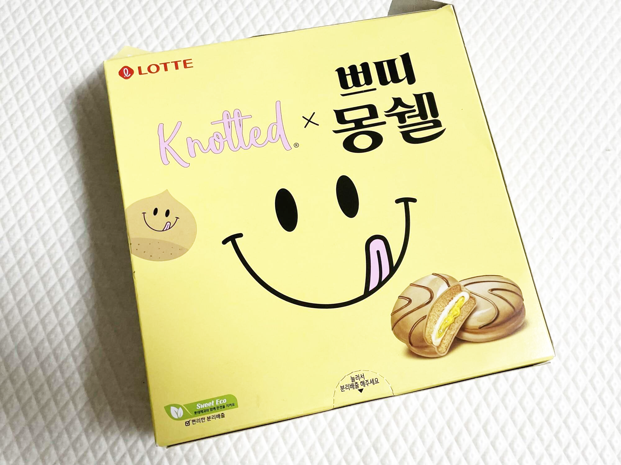 Knotted 쁘띠몽쉘 콜라보 마롱몽블랑맛 몽쉘 스마일 패키지가 너무 귀여워서 먹어본 후기입니다.