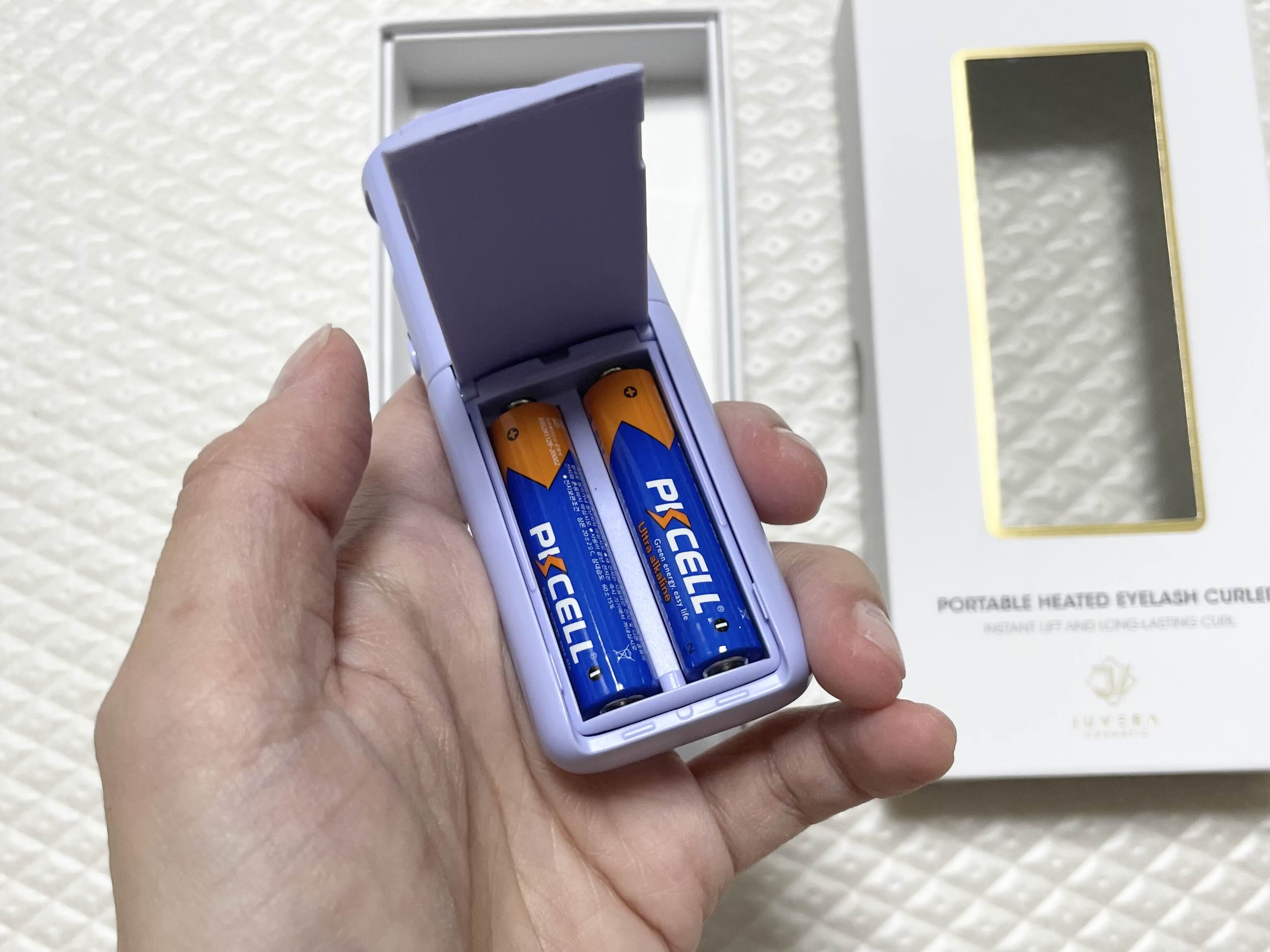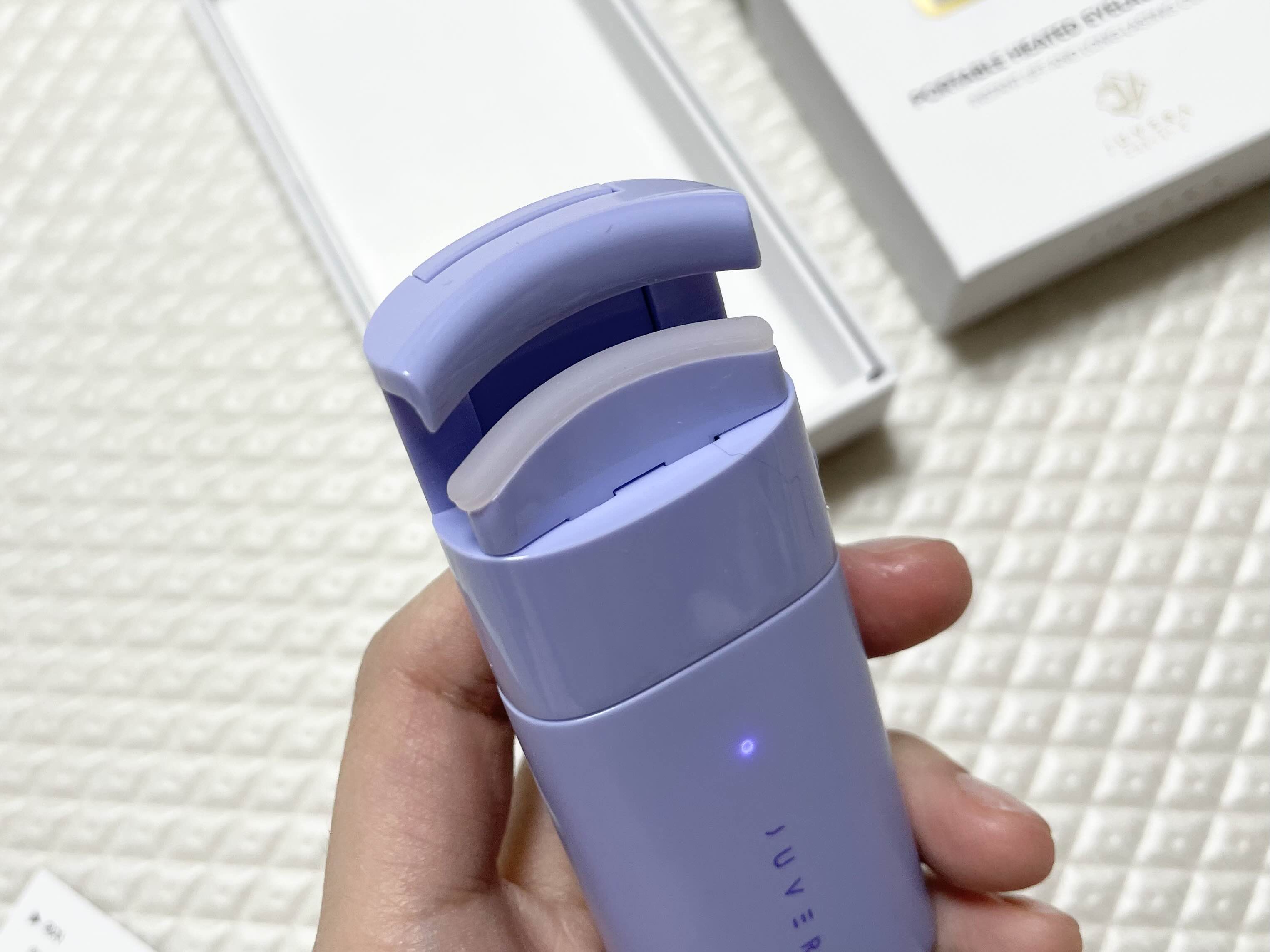 쥬베라 속눈썹고데기의 사용법은 아주 간단합니다. 옆에 전원 버튼이 있습니다.