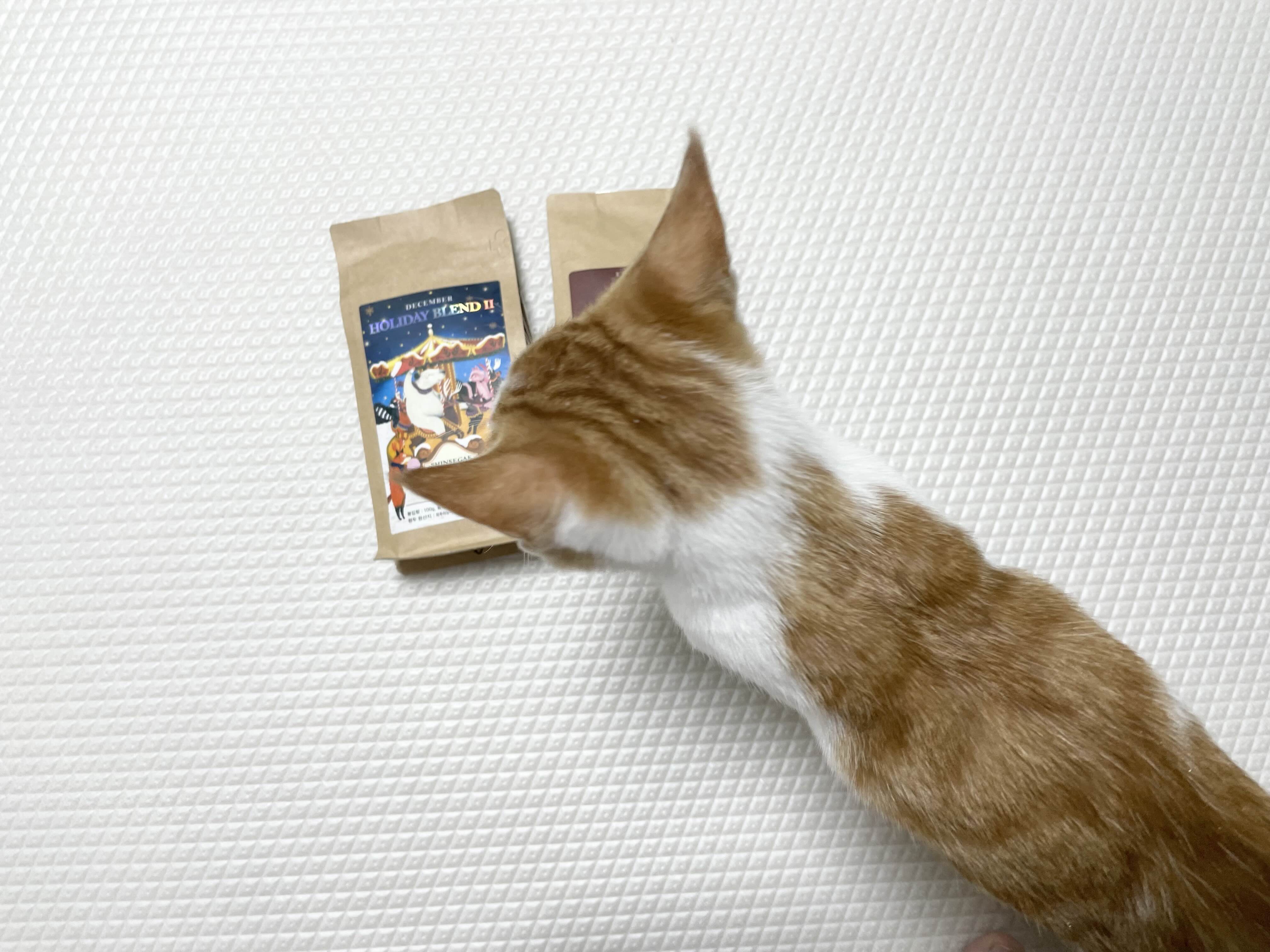 카페인 냄새가 고양이에게 안좋아서 후다닥 찍는데도 옆에 와서 알짱거렸습니다ㅜㅜ