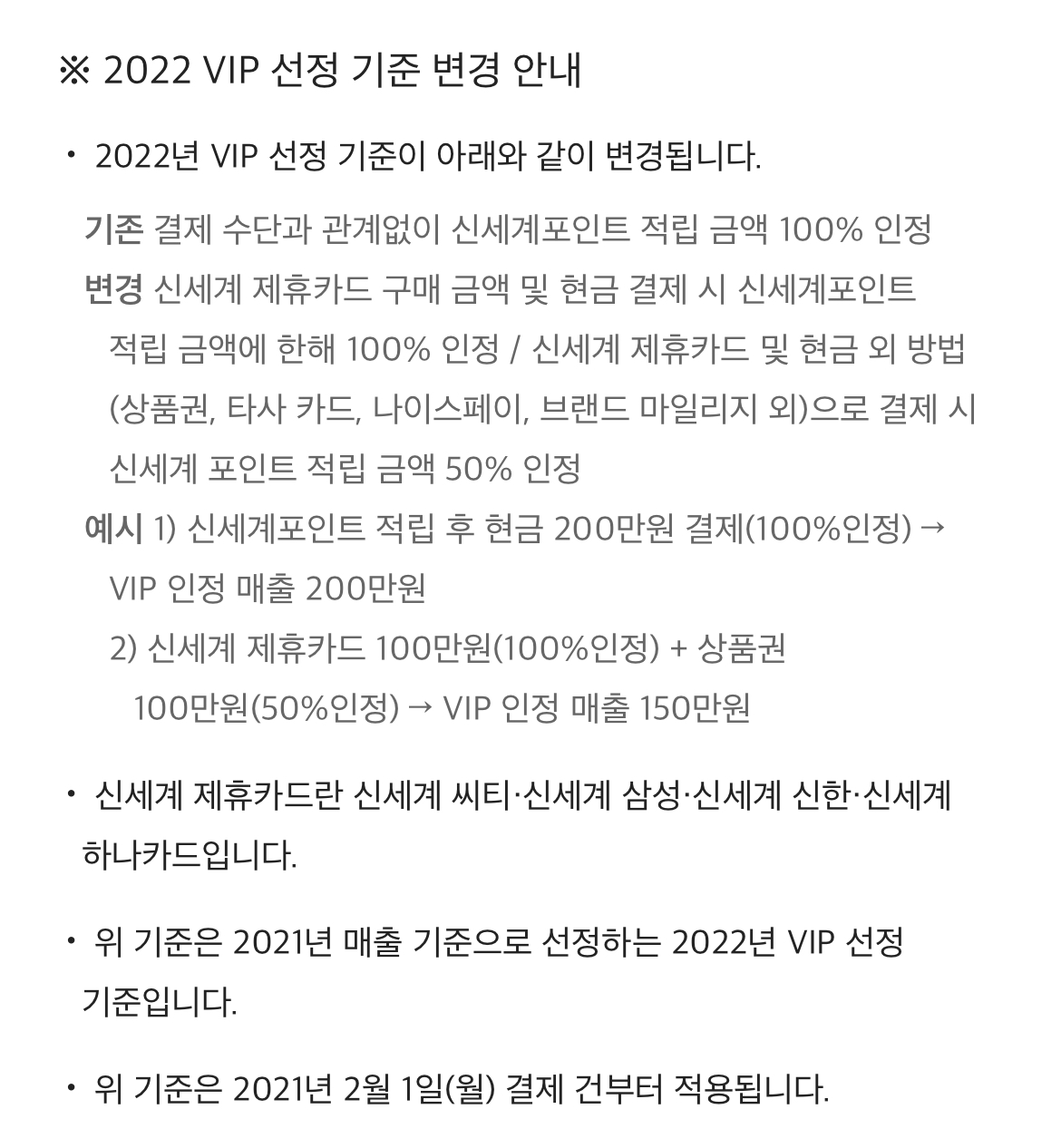 오는 2022년 신세계백화점 VIP등급 선정 기준이 변경됩니다