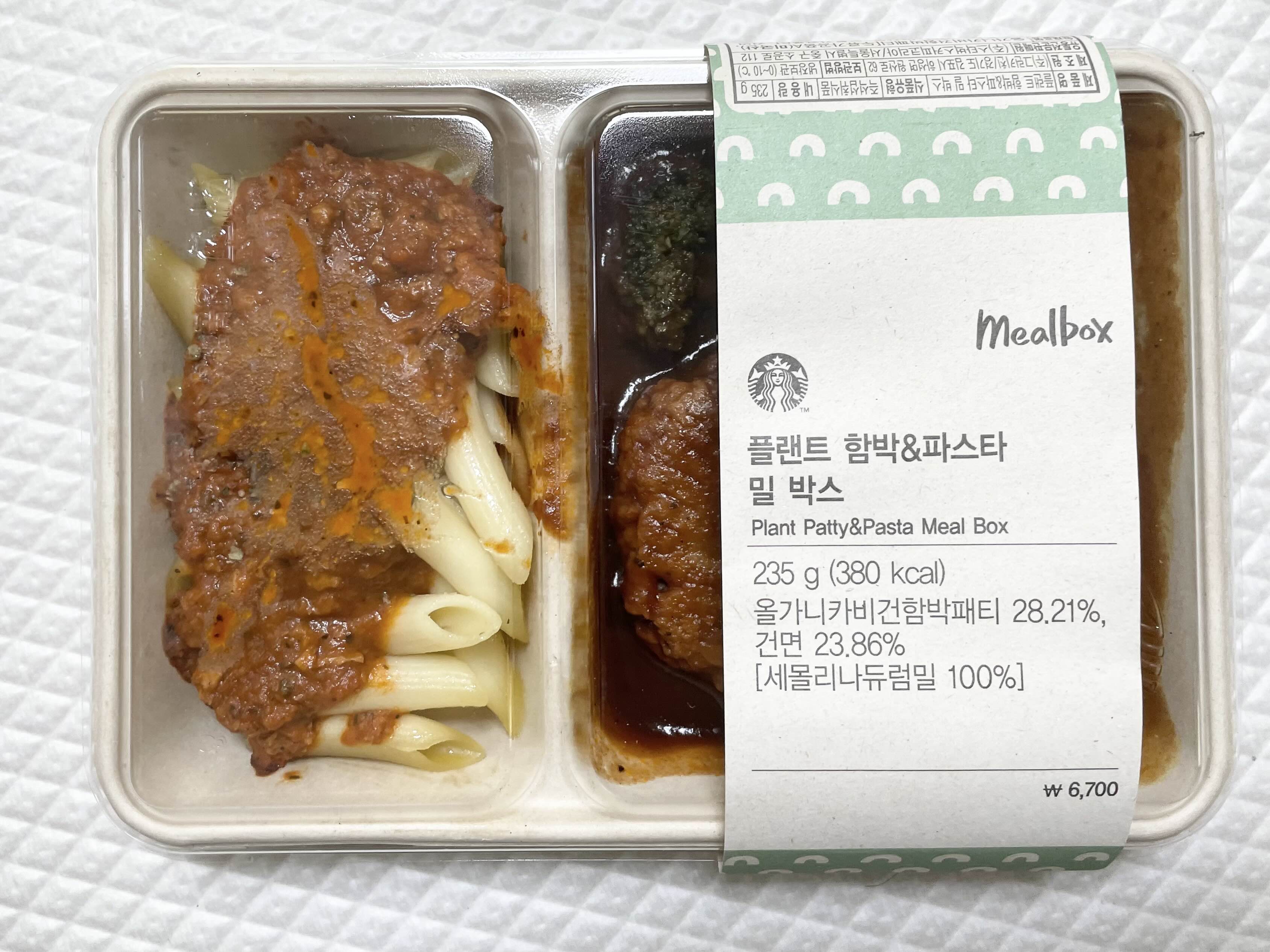 스타벅스의 플랜트 함박 파스타 밀박스 가격은 6,700원이고