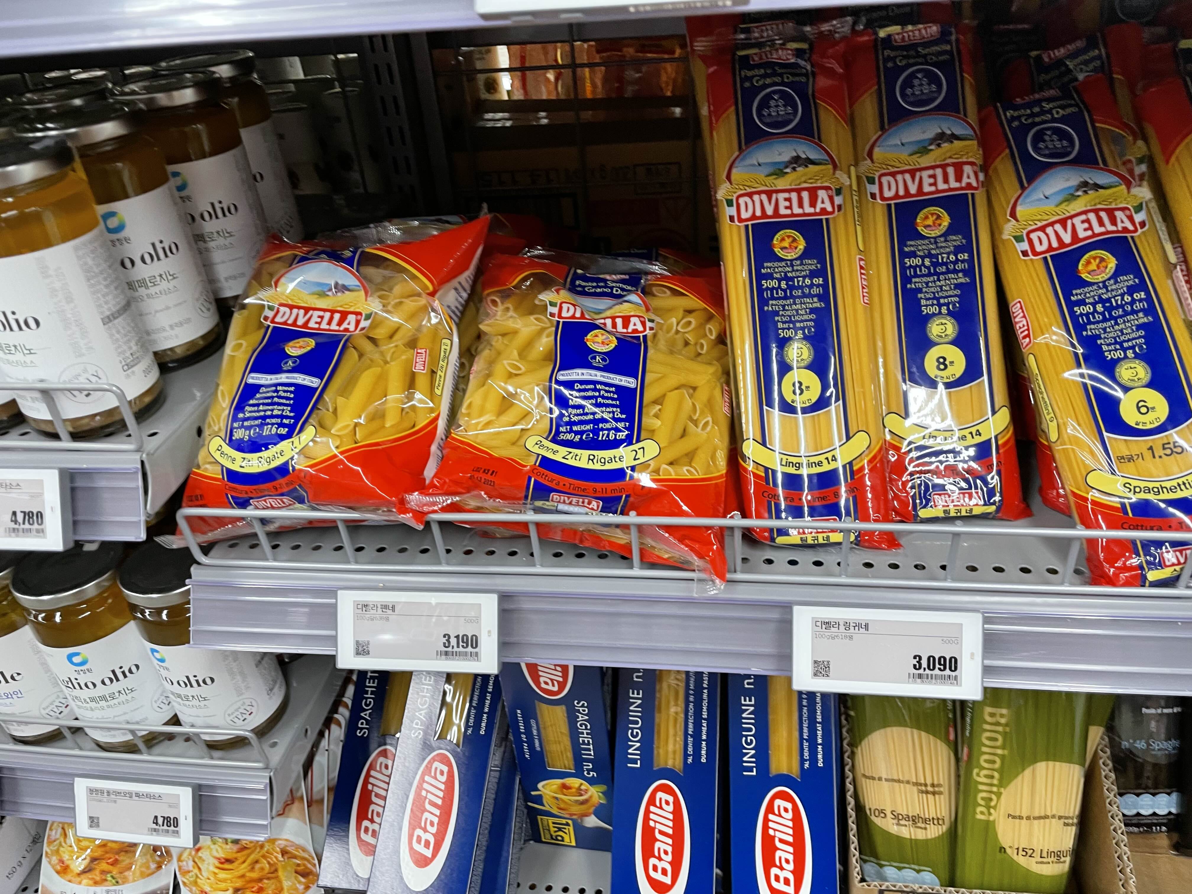 지하로 내려가 저의 목표인 파스타 종류가 있는 코너로 이동했습니다.