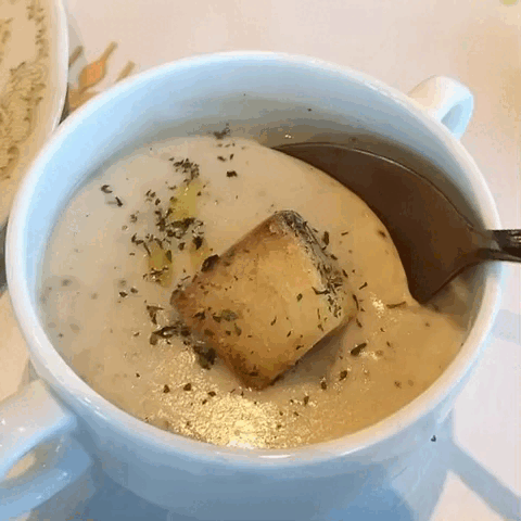 스프 위에도 올리브 오일이 뿌려져 있었고 큰 크루통 하나가 귀엽게 나왔습니다.