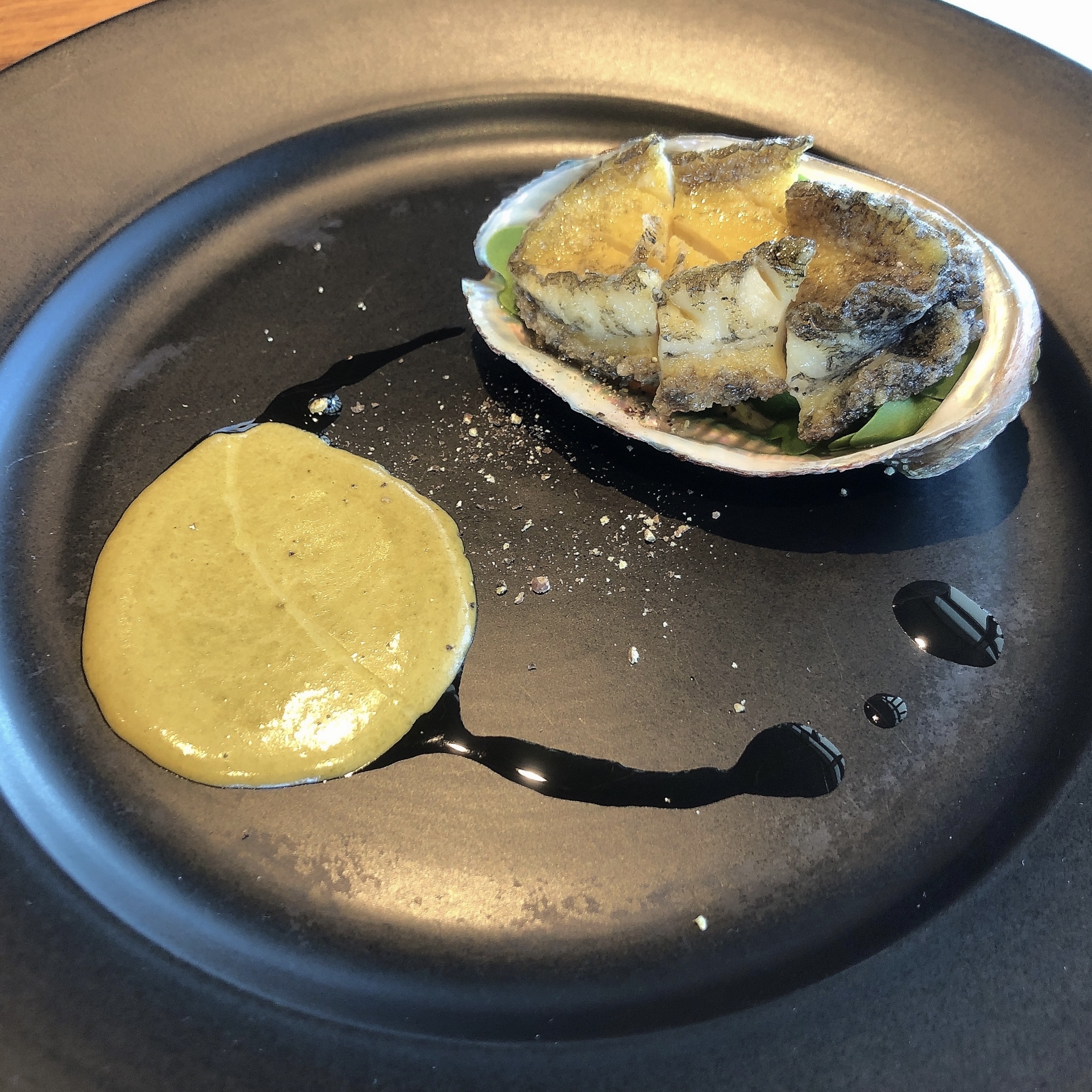 화이트 버터 블랑이라는 소스와 함께 나오는 전복 버터구이를 먹어봤습니다.
