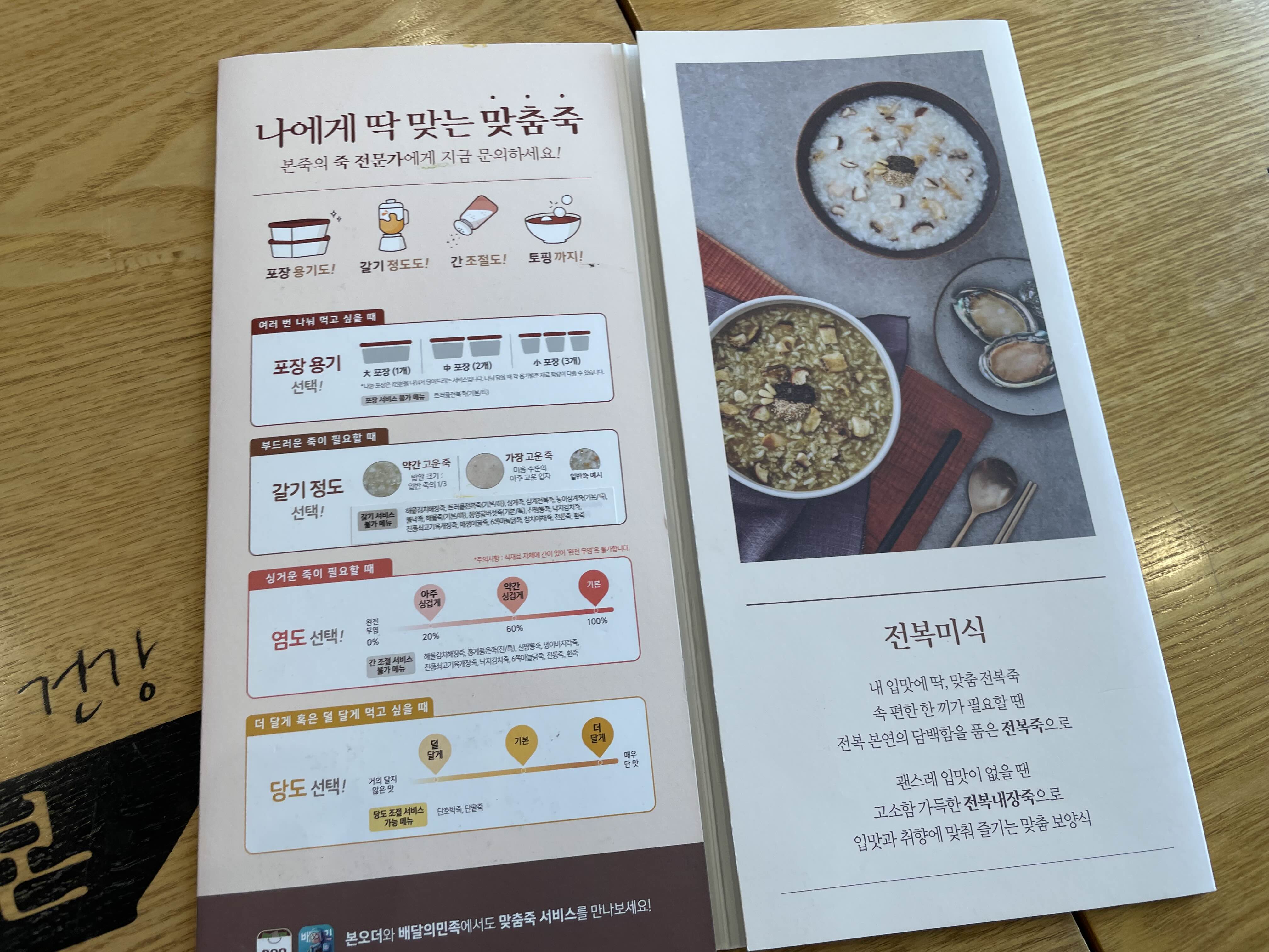 본죽이 좋은 점은 나에게 딱 맞는 맞춤죽을 주문할 수 있기 때문입니다.