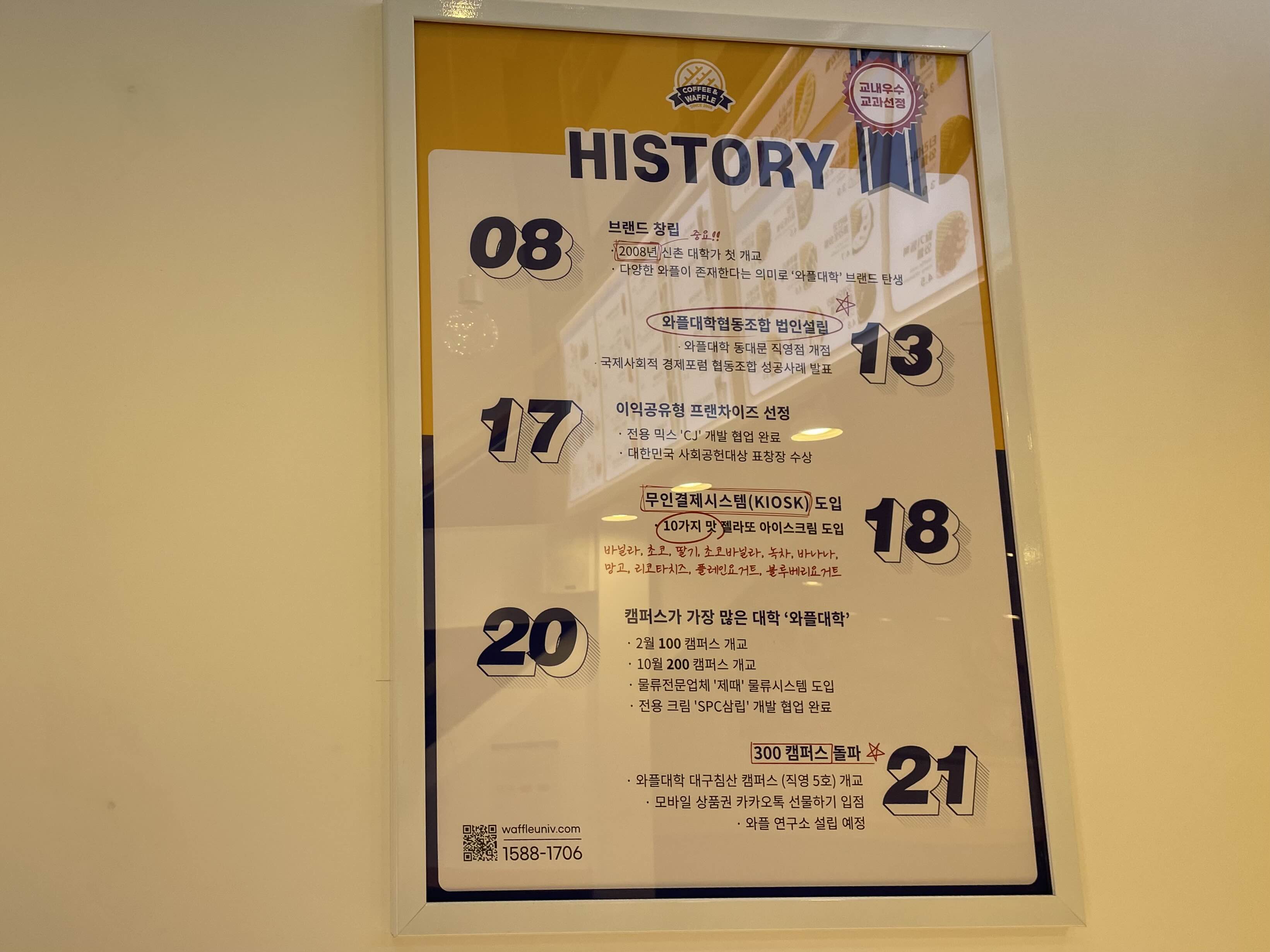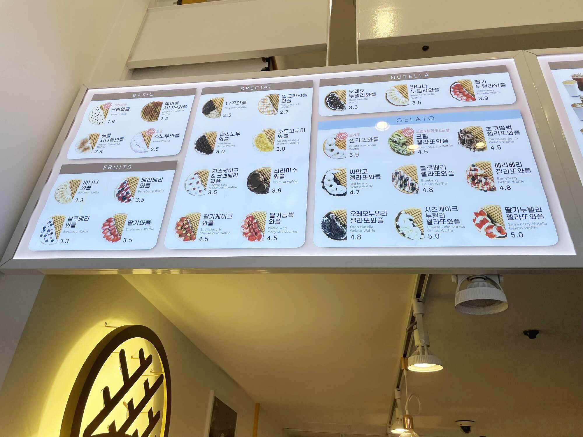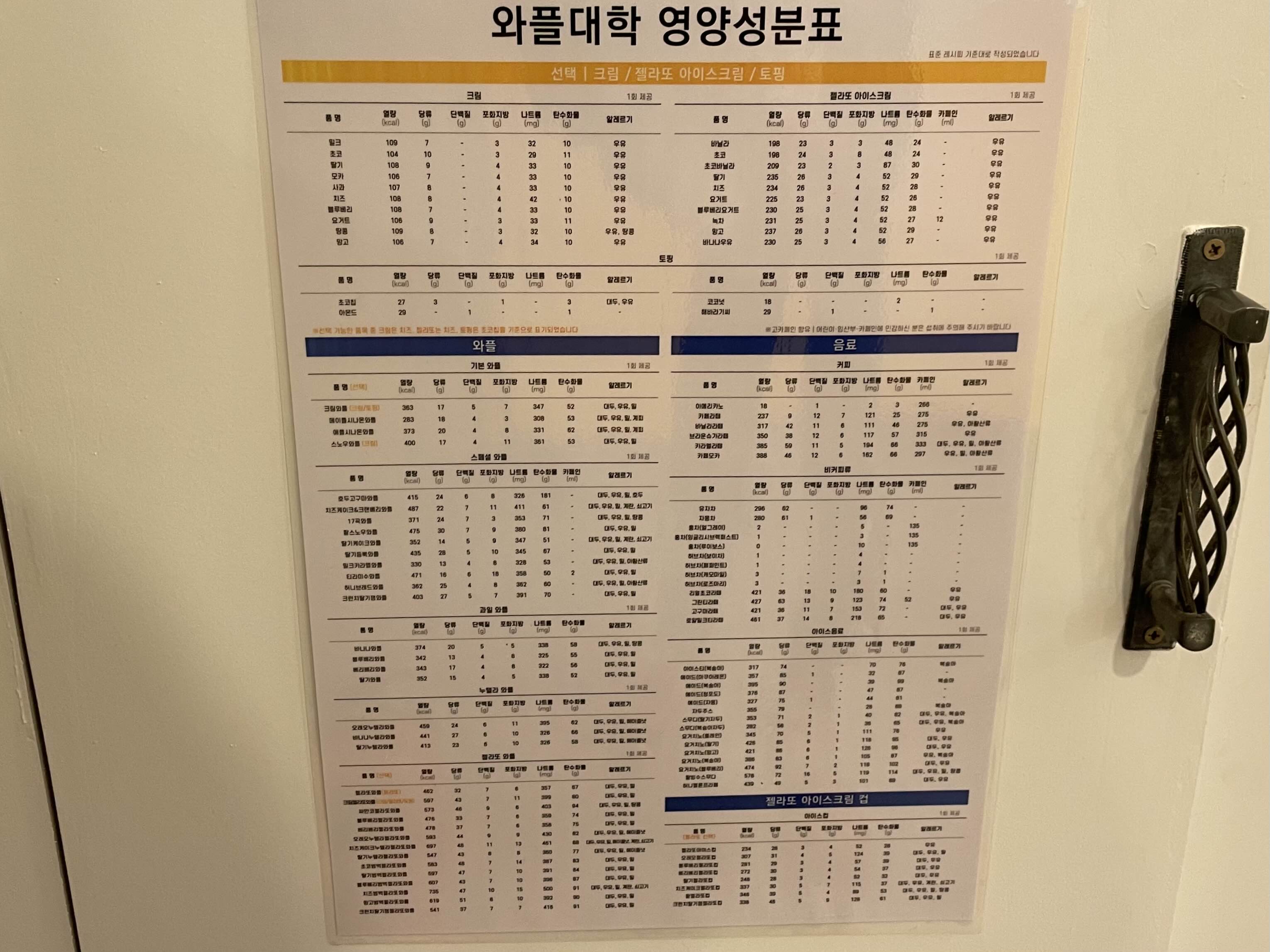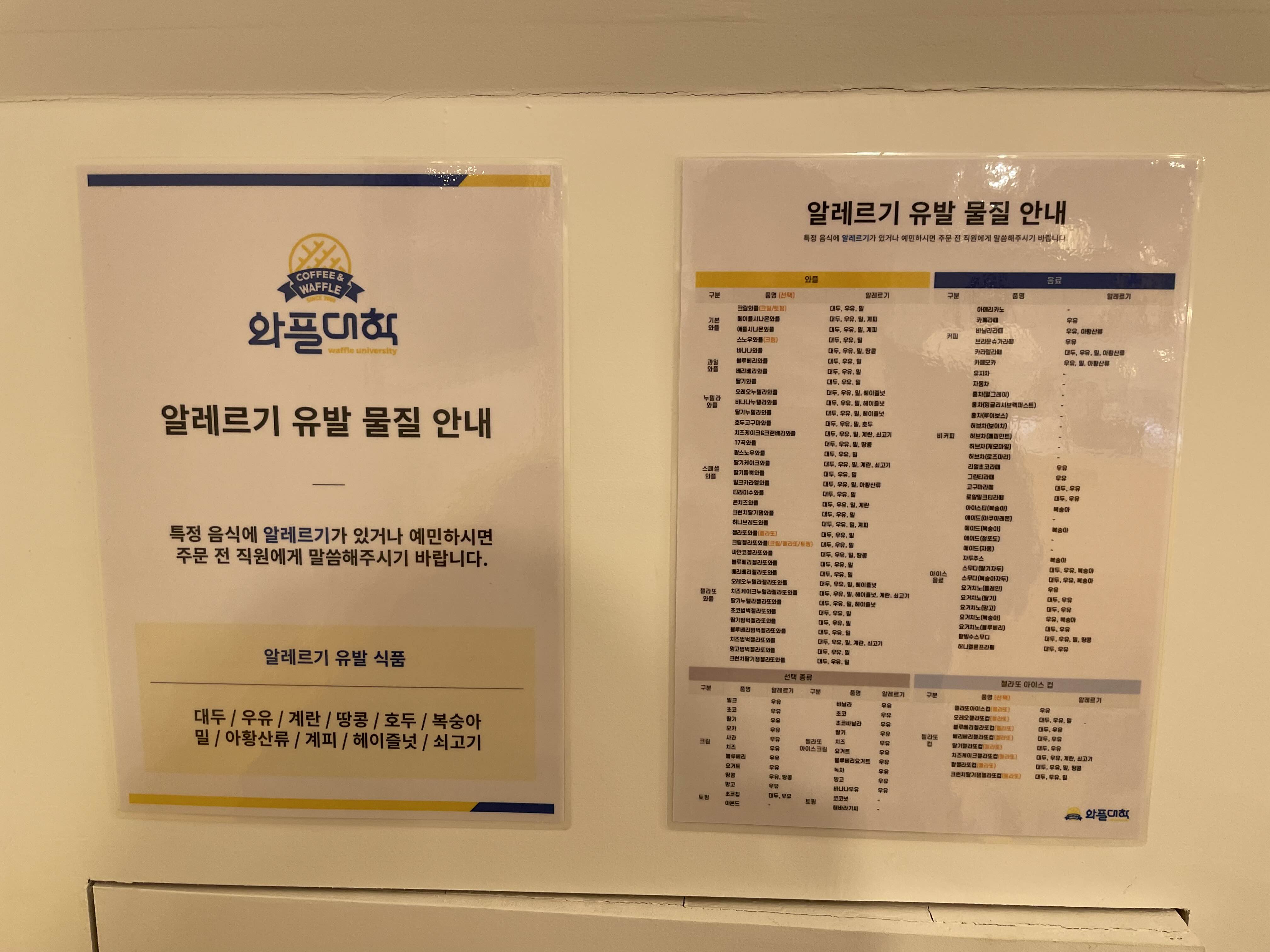 와플대학 메뉴판을 찍어왔습니다.