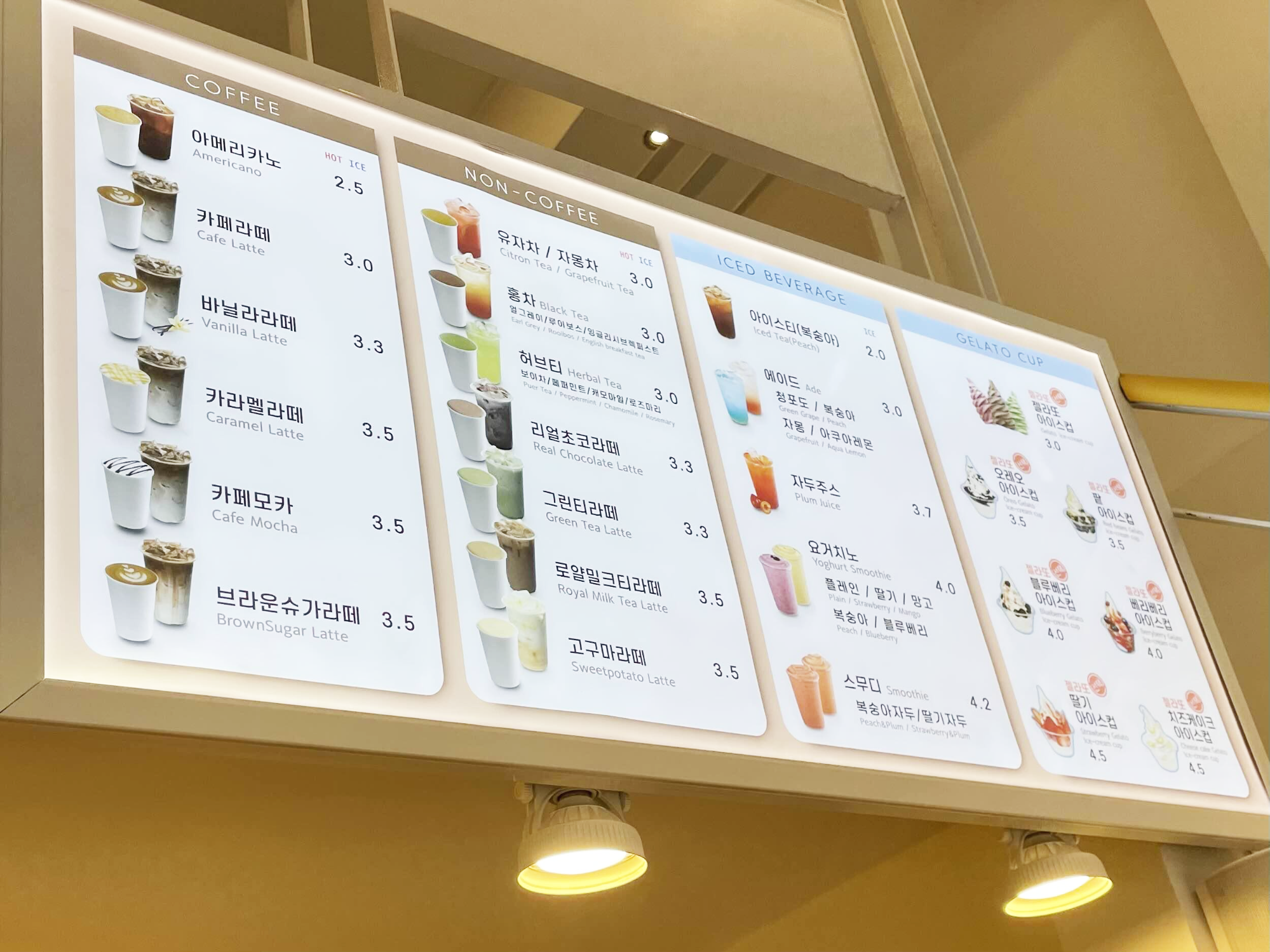 요즘 핫한 노란색와플집 와플대학 메뉴들 그리고 음료 가격까지 상세히 알려드립니다.
