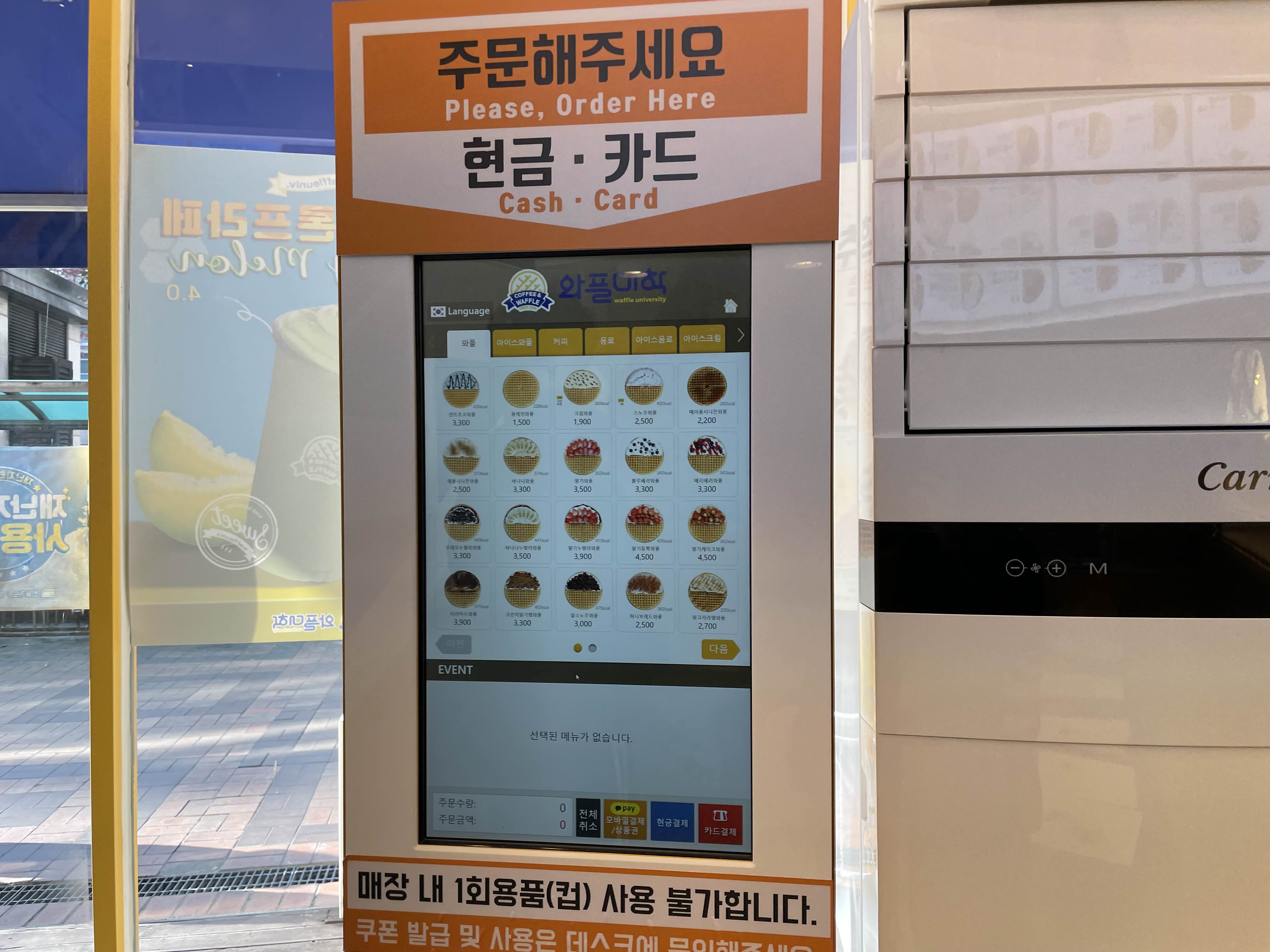 머쓱타드를 경험하고 고대로 뒤돌아서 와플대학 메뉴을 찬찬히 둘러보고 주문을 했습니다 ㅋㅋ