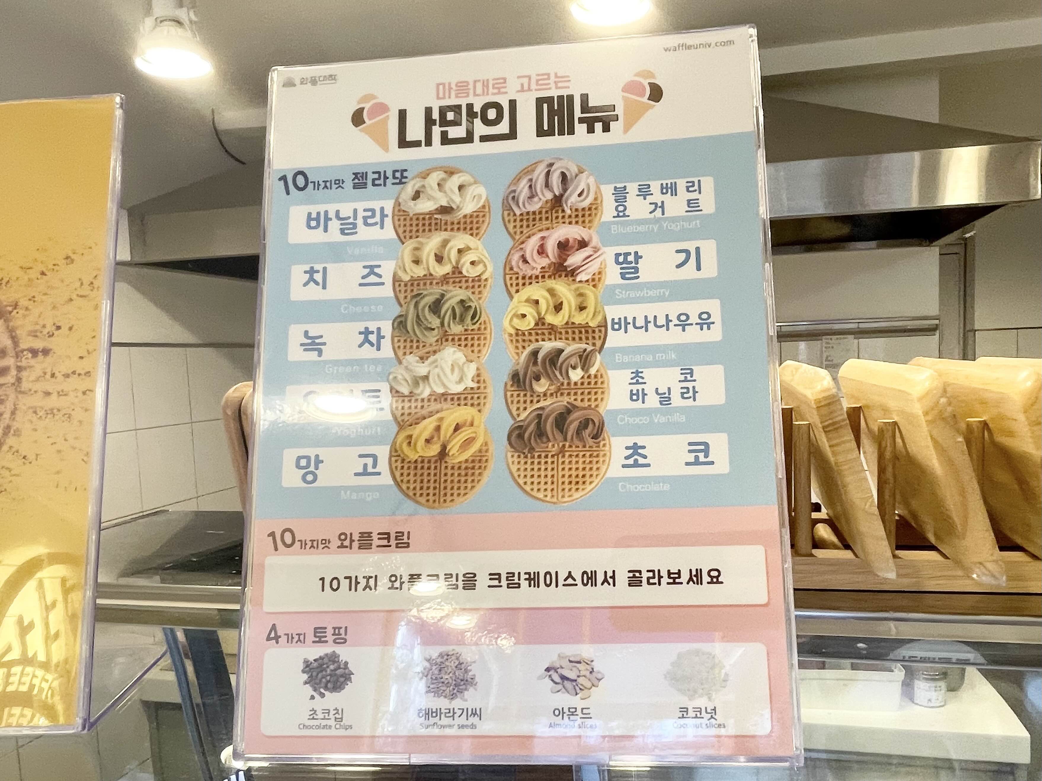 머쓱타드를 경험하고 고대로 뒤돌아서 와플대학 메뉴을 찬찬히 둘러보고 주문을 했습니다 ㅋㅋ