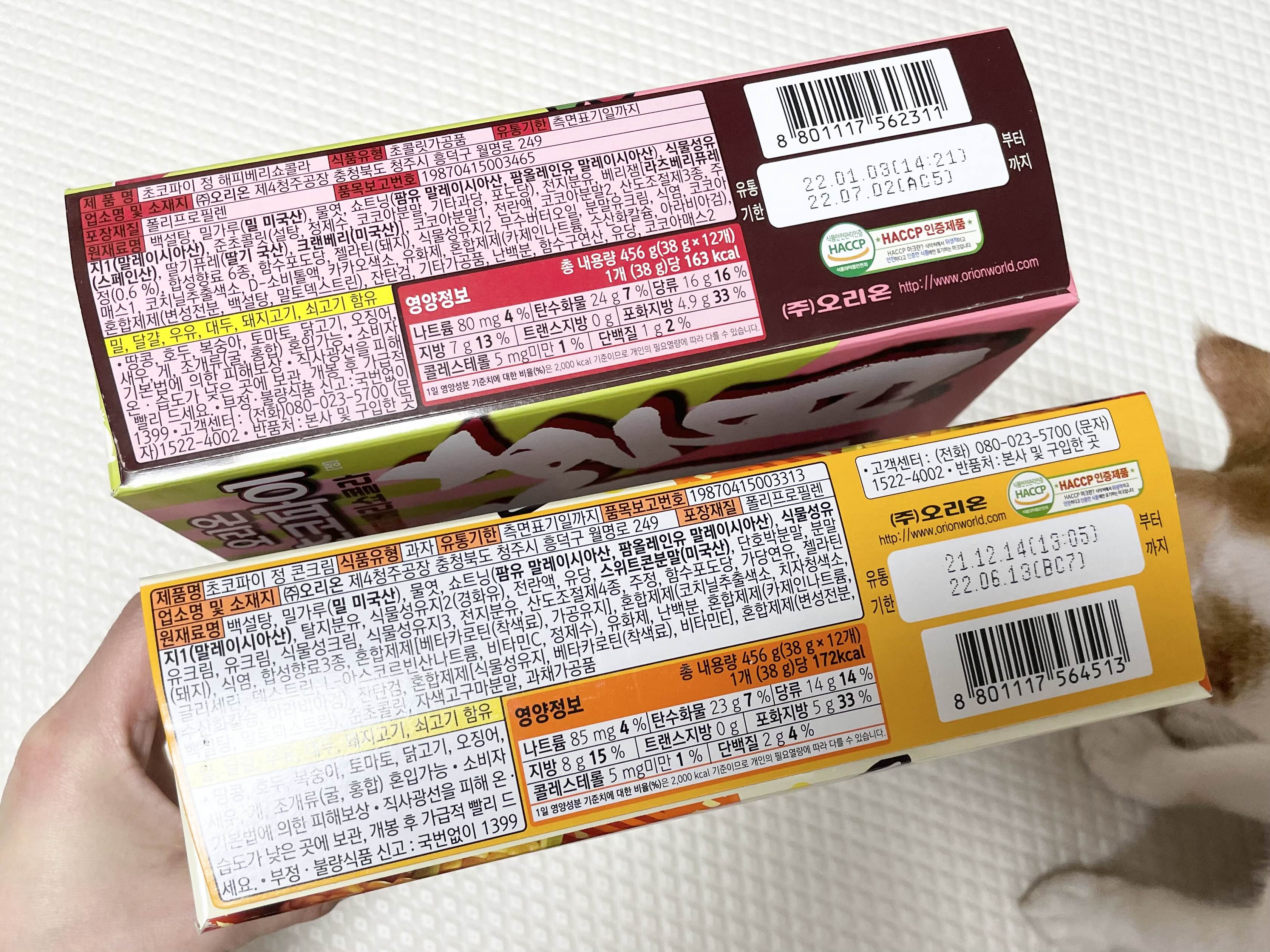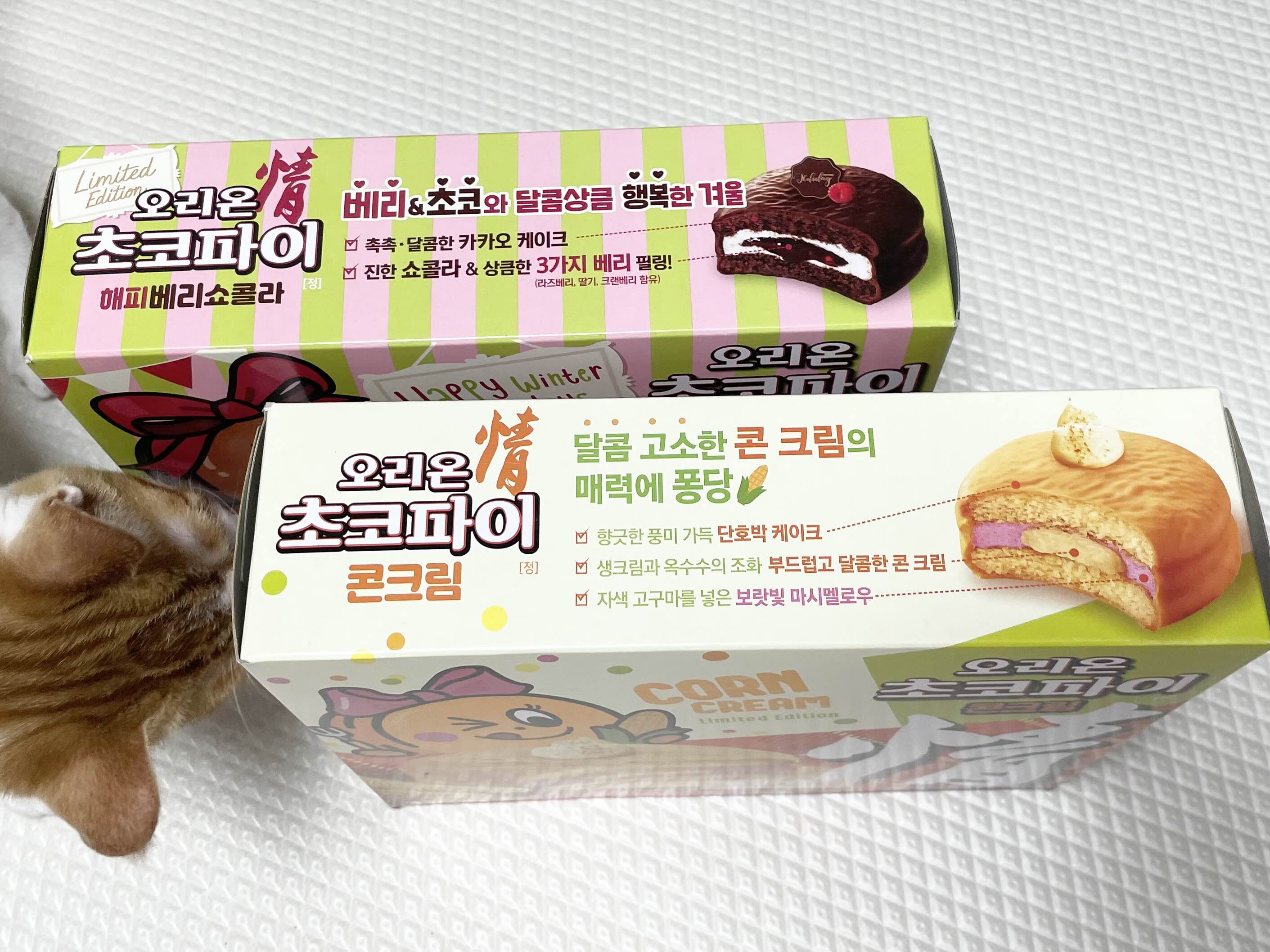 오리온 초코파이 새로운 맛 해피베리쇼콜라와 콘크림 맛 솔직후기입니다.