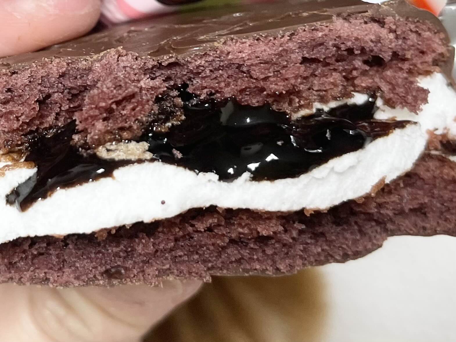 겉면이 단호박 맛으로 한껏 코팅 되어 있어서 익숙한 초코파이 비주얼은 아니었습니다 ㅋㅋ