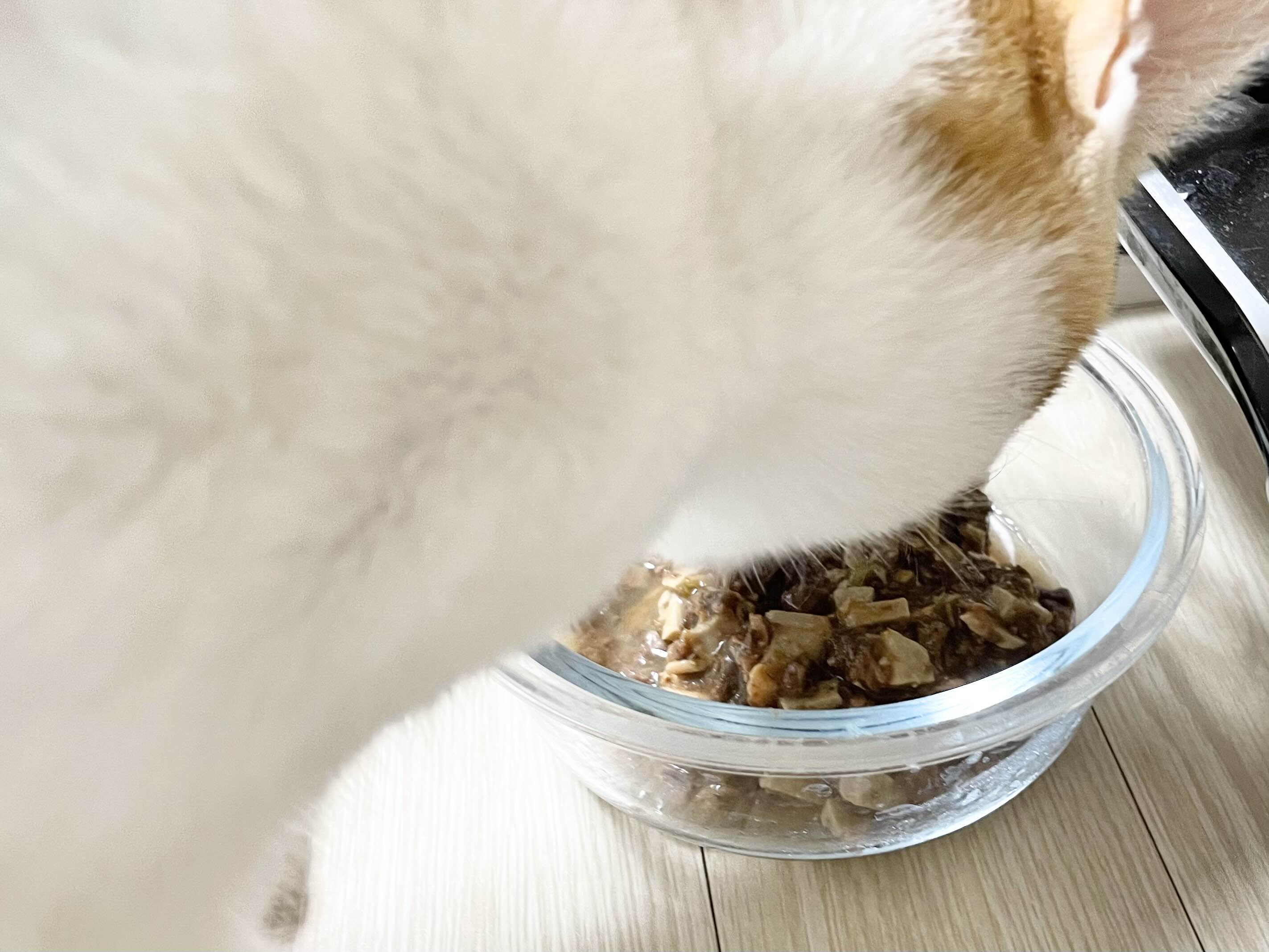 빨리 먹어야 하는 내추럴 발란스 스튜를 향한 애처로운 눈빛을 발사합니다